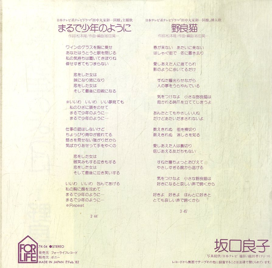 C00185542/EP/坂口良子「田中丸家御一同様 OST まるで少年のように / 野良猫 (1982年・7K-54・サントラ・松本隆作詩・坂田晃一作曲・猫ジ [浏览原始页面]