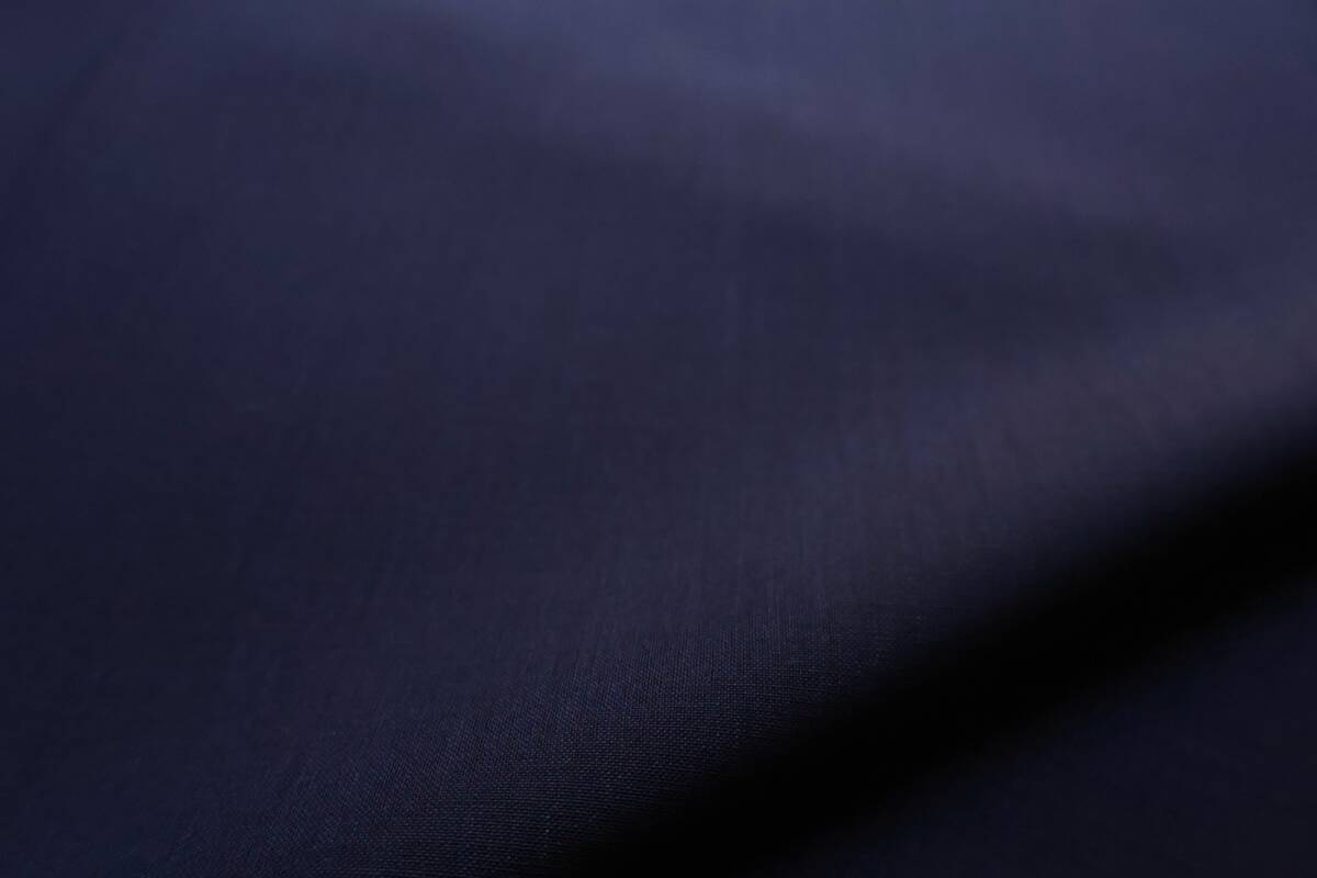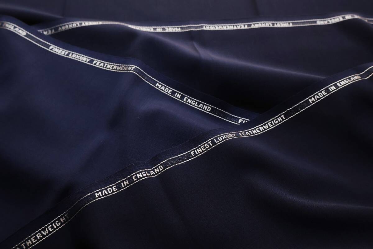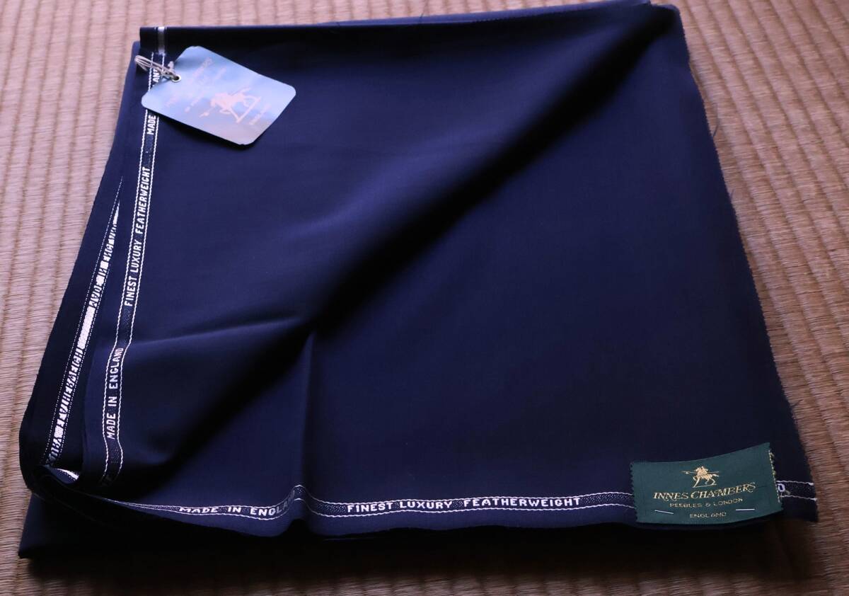 生地商さんが保管していたデッドストック/ヴィンテージの生地で、生産年、素材など詳細は不明ですが、名門織物商社ホーランド&シェリー傘下のスコットランドの卸商(マーチャント)、INNES CHAMBERS イネスチェンバースのネイビー無地。