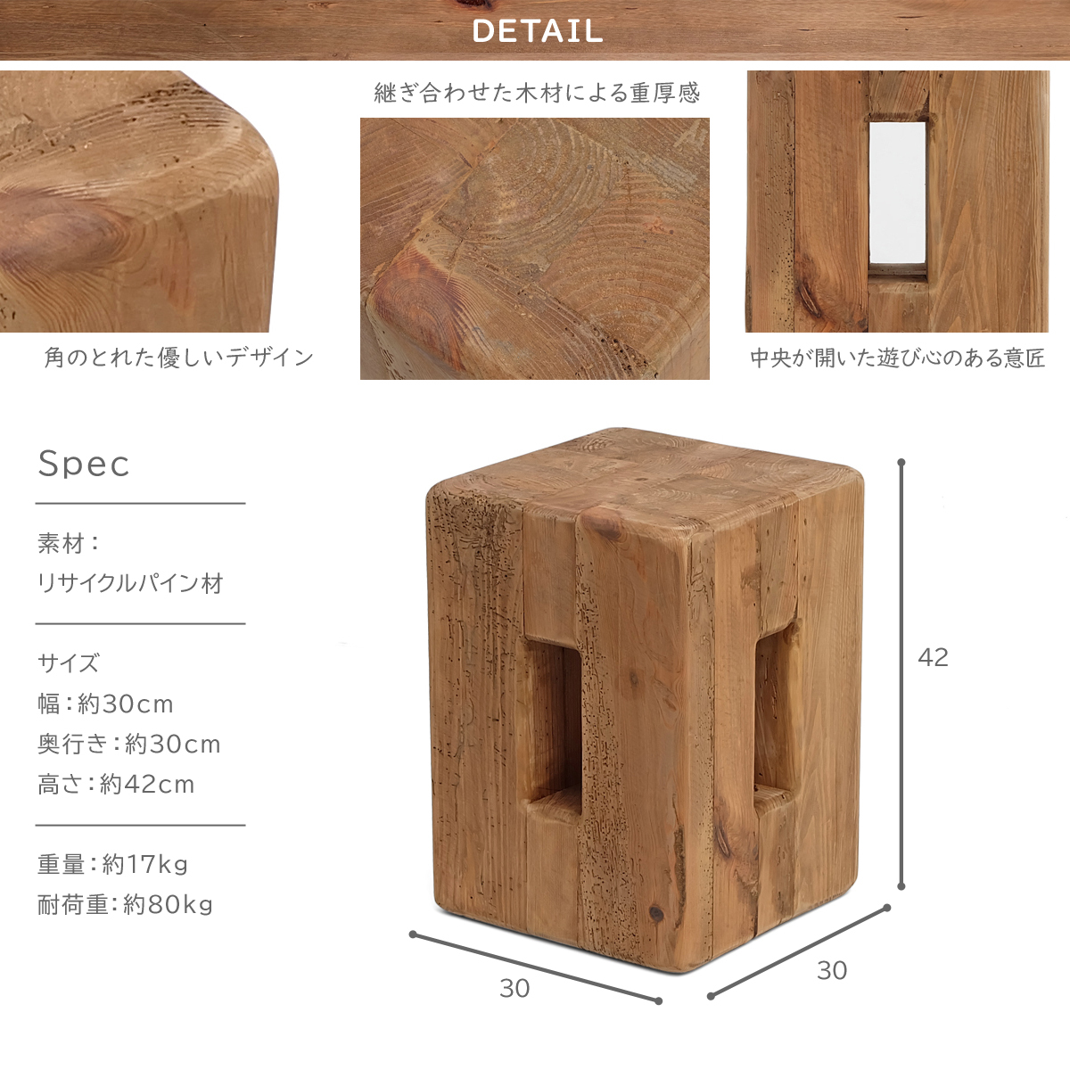 | 商品名 | リサイクルパイン ブロックスツール / 古材家具 |