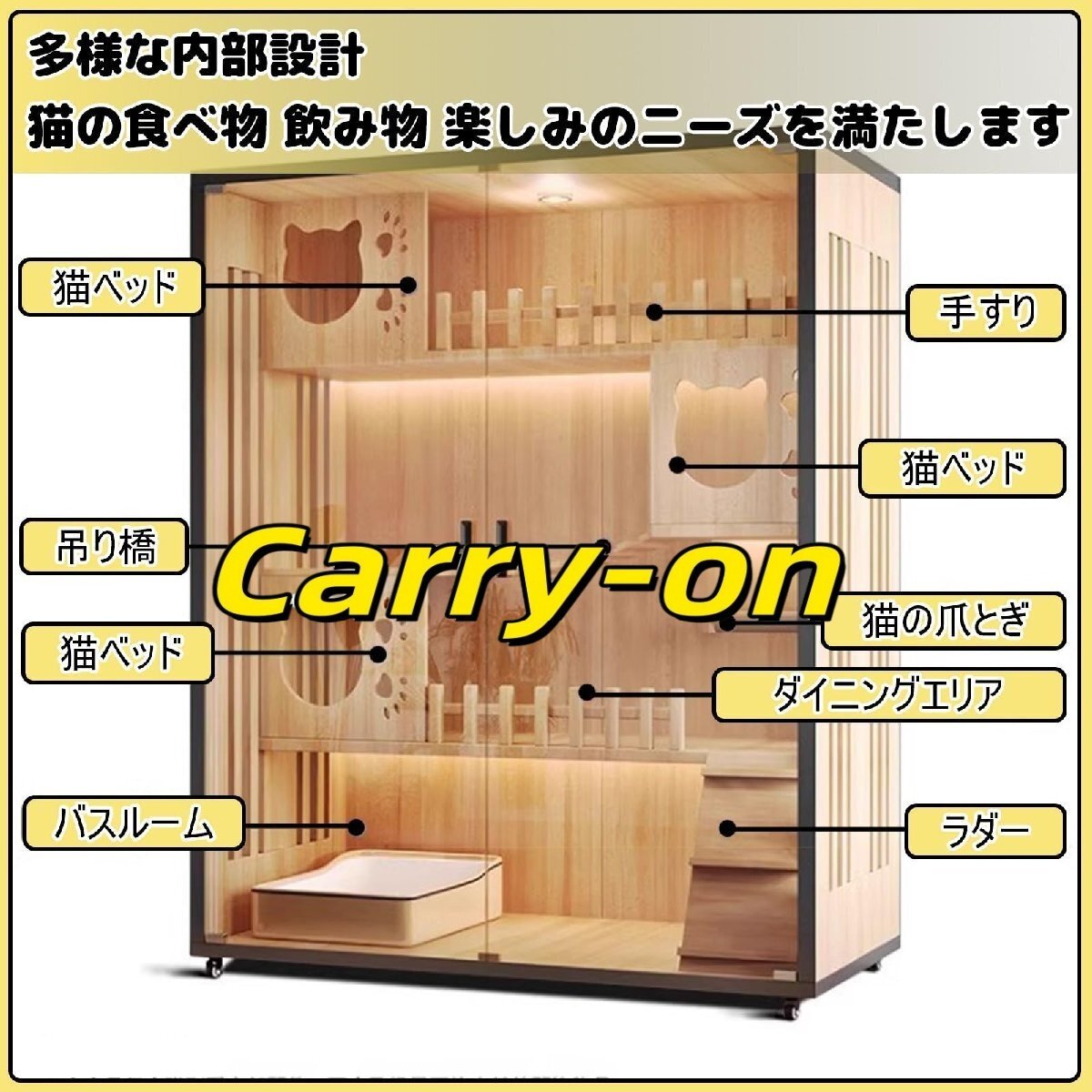 ケージ猫 猫 ケージ 3段 全体が厚みのある無垢材の板で作られており、通気性に優れています。底部にブレーキ付きのユニバーサルホイールが付いているので、簡単に移動できます。広い内部空間と充実したエンターテイメント設備を備えています。注: 表示されている画像は、1 つのサイズの内部詳細です。具体的な内部の詳細についてはメイン画像をご覧ください。特徴:1. 厚みのある無垢材2.3C強化ガラスデザイン3. 下部にブレーキを備えたユニバーサルホイール設計4. 広い内部空間5. 多層設計6. 充実した内部設備ブランド: EAHPBMサイズ: 60x60x120/90x60x90/90x60x120/90x60x150/120x60x120cn重量: 35/35/45/55/63KG材質:無垢材+3C強化ガラス色: イエロー/ブラックEAHPBMをお選びいただきありがとうございます。当社は常にお客様のショッピング体験を第一に考えており、ショッピングの過程で生じるあらゆる問題を喜んで解決いたします。