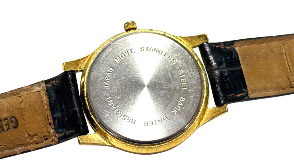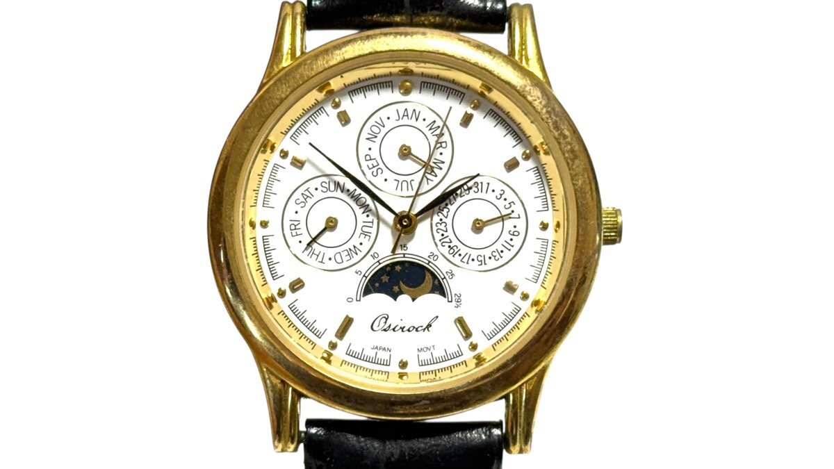 | ご覧いただきありがとうございます! 【ブランド】 オシロック 【商品名】 腕時計 オシロックの腕時計です。シンプルに高級感を感じるデザインでとても素敵です! 【ムーブメント】 クオーツ 【サイズ】 フェイス35㎜ (リユーズは含みません) 【コンディション】 ランク『B』 補足:動いていません。現状でのお渡しです。小傷があり、ベルトにも少々使用感を感じるお品です。