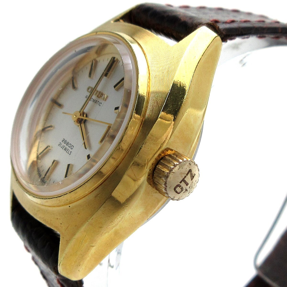 ■東京に本社をおく日本の精密・電子機器製造会社『シチズン(CITIZEN)』。 ■1964年8月、製造のヴィンテージウォッチ。 ■18000代の振動が主流の中、28800振動を実現させた小型ムーブメント。ハイスペックムーブメントの先駆けモデル。 ■キャップゴールド(金張り)の丁寧で深みのあるケース。 ■ケースデザインはラグが一体となったラウンドとノー型の「Cライン」。 ■部品取りはもちろん、希少せすのでコレクションにもおすすめの逸品です。 ◎オートマチックムーブ。 ◎カレンダー。早送りは往復式。 ◎スクリューバック。 ---【商品状態】--- ☆稼動品、ヴィンテージ時計になりますので、記載しきれないダメージなどはご理解ください。 また、現状モデルとは異なり、精度なども劣ります。 ☆外装、クリーニング済、小キズはありますがキレイです。 ☆ガラスにキズがあります。 ☆バンド(社外品)、留めた際の跡、スレ、バンドループが1つのみになります。 尾錠も社外品。 ☆中古商品のため防水性の保障はつきませんのでご了承ください。 ☆ランクはケース【7】、ベルト【5~6】、総合【6】です。 ※商品画像はお客様のモニター環境によっては色調が異なって見える場合がございますのでご了承ください。 |