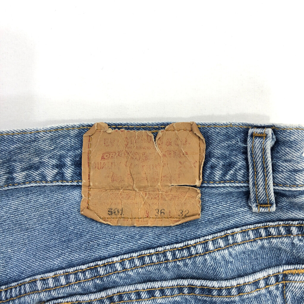 | 【商品管理番号】 R5380 【ブランド】 Levi's/リーバイス 【サイズ】 W36 L32 【実寸サイズ】 ウエスト:約84cm 股上:約31cm 股下:約77cm わたり幅:約31cm 裾幅:約20cm 【主な素材】 表地 : コットン 【色】 ライトブルー 【仕様】 生産国 : USA製 90年代 501 【状態】 キズ:ポケット内 破れ:裾、股 | |||