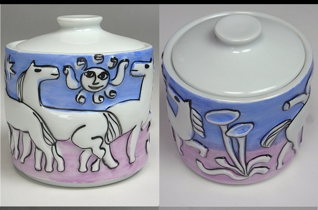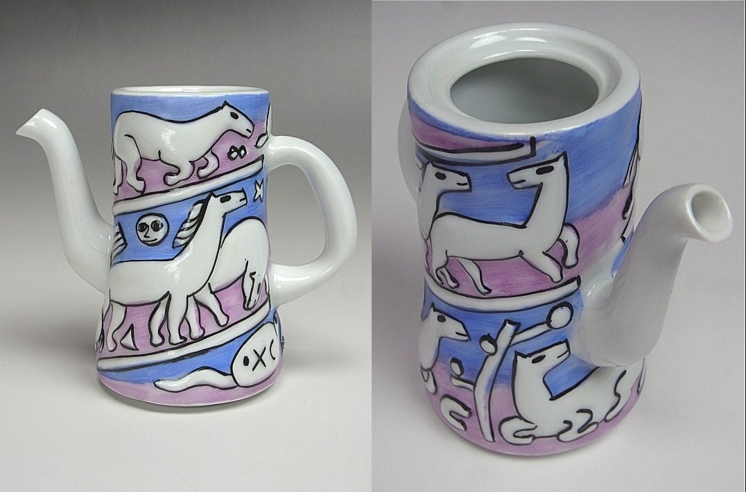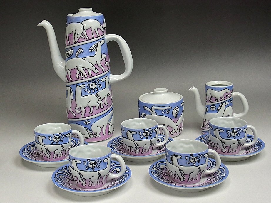 castro sargadelos サルガデロス コーヒーセットでございます。 スペインの最高級磁器として有名なサルガデロスのセットです。 現在販売されているお品と違いコレクターが現地で探してきたお品ですので 日本では大変珍しいお品だと思います。 初期サルガデロスを彷彿させるビジュアルアートらしい一品です。 もちろんハンドメイド、ハンドペイントでございます。 残念ながらミルクポットの蓋が欠損しておりますが、その他は気になる様な難はなく 至って良好な状態のお品です。 全てのお品に「sargadelos」の銘を確認致しました。 お品寸約 コーヒーポット 高 24.5cm カップ口径 6.3共箱でございます。 お品は保障させていただきますので、レブリカや贋作の類だった場合や 説明と違う状態だった場合は返品はもちろん、送料や振込み手数料を当店で 負担させていただきます。 どうぞ宜しくお願い致します。 ※齊藤商店は創業75年の美術商です。ホームページは【こちら】をご覧ください。(外部サイト) 他にもいろいろと出品しておりますので下記バナーをご覧下さいませ。 ![]() |