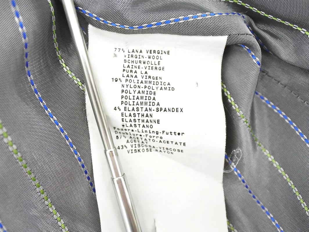 | 商品の状態 | 裏地:あり(総裏地) 肩パットが入っています。 素材タグにダメージがあります。 後ろ面・背中にヨゴレがございます。 (各箇所のヨゴレやダメージに関しましては、写真をご参照ください) 他に状態の気になる箇所はございません。 全体的に見ると良い状態のお品です。 (当方管理番号:khfk060004-t) | ||||||||||