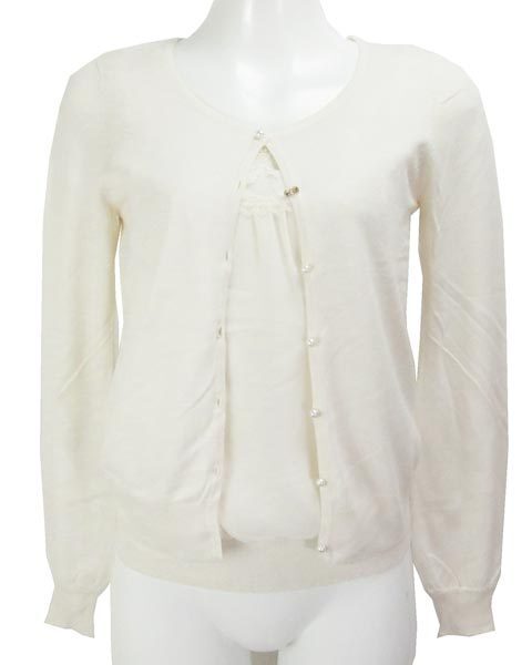 | コメント | 上品でフェミニンなカーディガンとインナーのセットアップ。 流行に左右されないシンプルなカーディガンと シフォンやパール、レース使いが女性らしいインナー 1枚でもセットアップでもお使い頂ける便利アイテム。 甘目コーデから大人キレイコーデまで活躍してくれます。 |