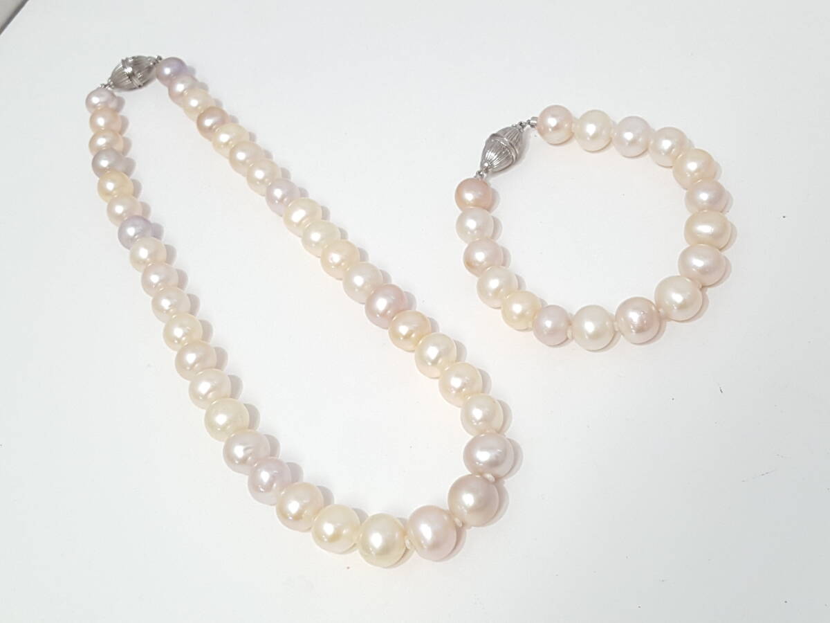 【USED品】大粒変形本真珠 ネックレス ブレスレット 2点セット