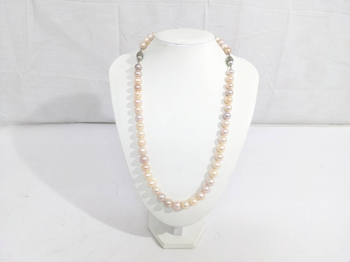 【USED品】大粒変形本真珠 ネックレス ブレスレット 2点セット/ロングネックレスにも/接続時全長約62cm/パール約1.5×1cm/04KM111503