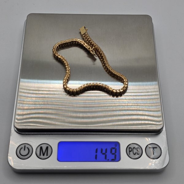 こちらは、**18Kの地金を贅沢に使い、合計3.1カラットもの天然ダイヤモンドを連ねた、豪華なテニスブレスレット**です。
