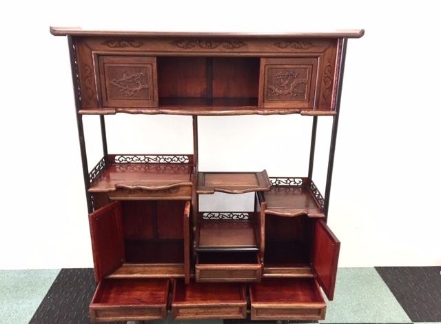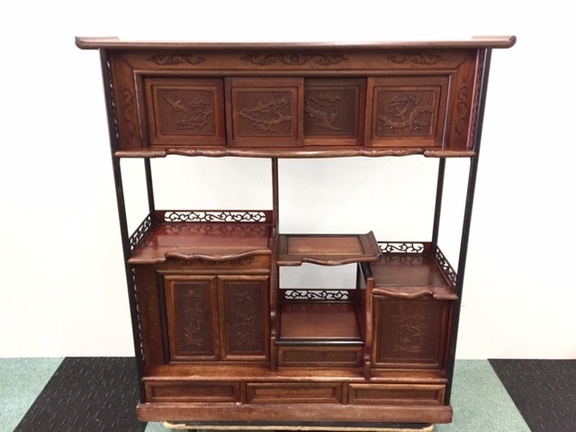 ☆直接引取り歓迎☆ 唐木家具 縞黒壇 唐木 茶棚 茶箪笥 山水彫り 和風 インテリア 和家具 ヴィンテージ 昭和 レトロ 参価35万 |