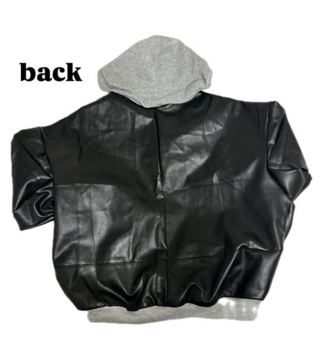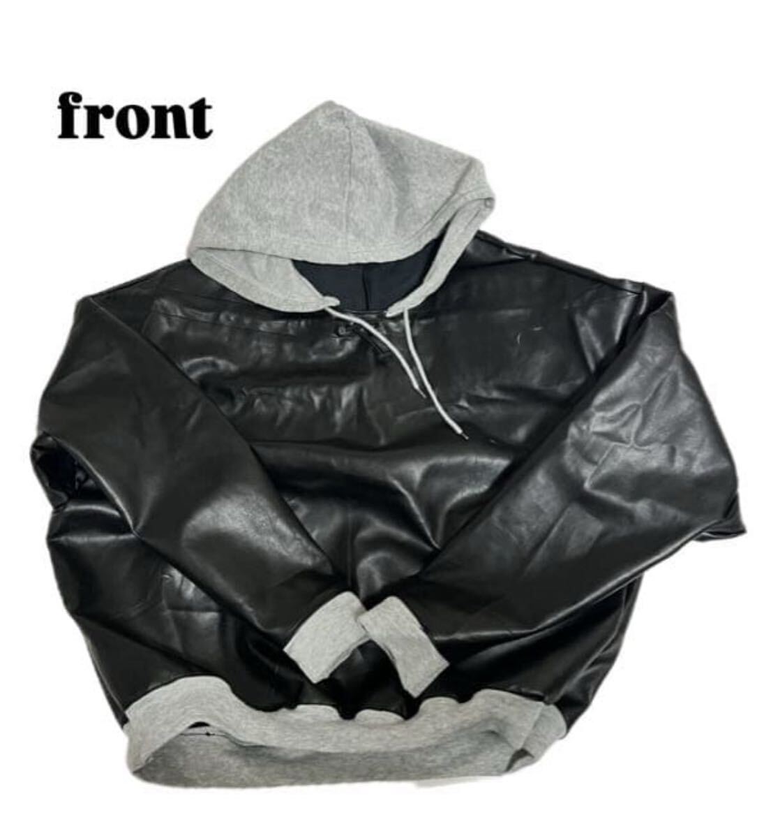 スウェット生地のフード付きのレザーパーカー、カジュアルスタイルに最適。| 出价者 | 信用 | 价格 | 时间 |