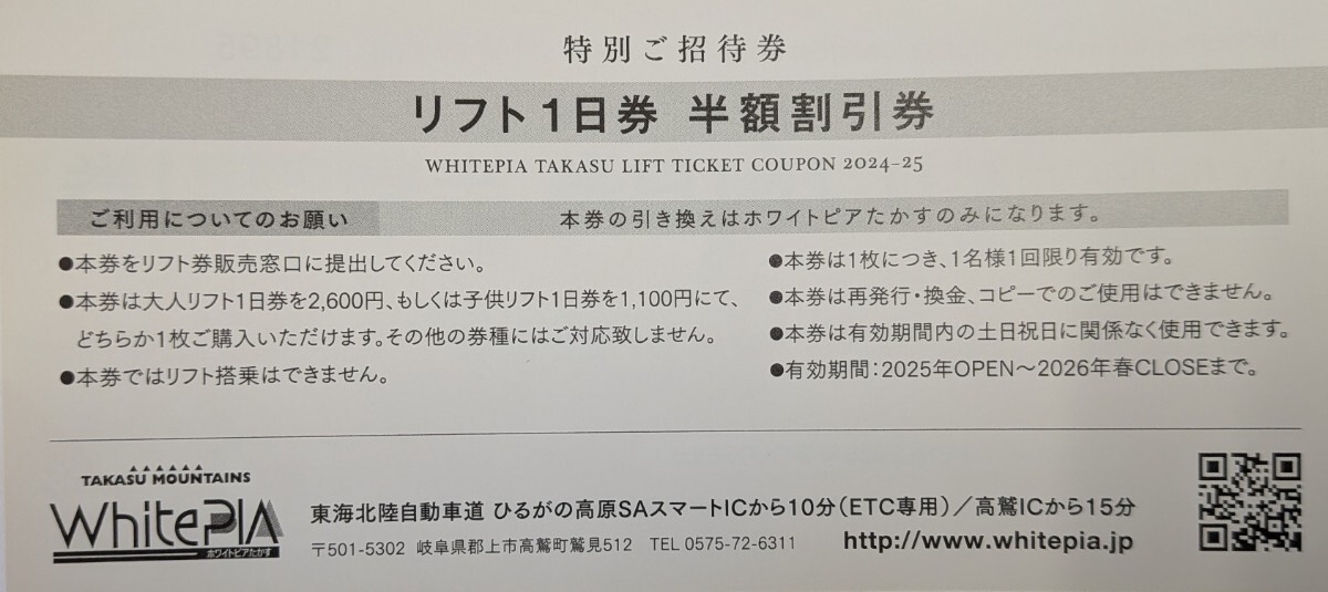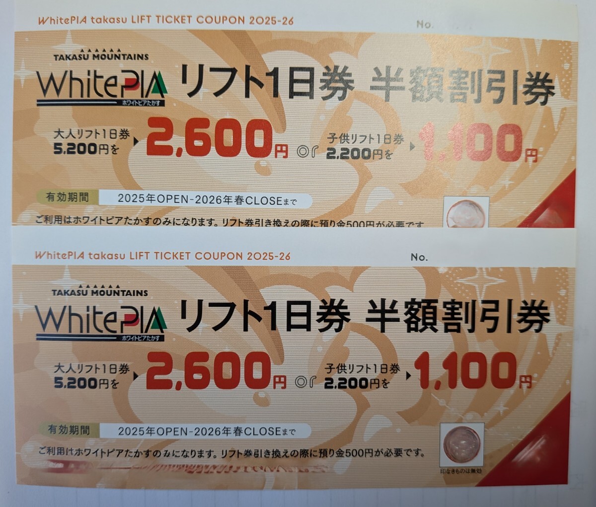 ホワイトピアたかす リフト1日券 半額割引券| 出价者 | 信用 | 价格 | 时间 |
