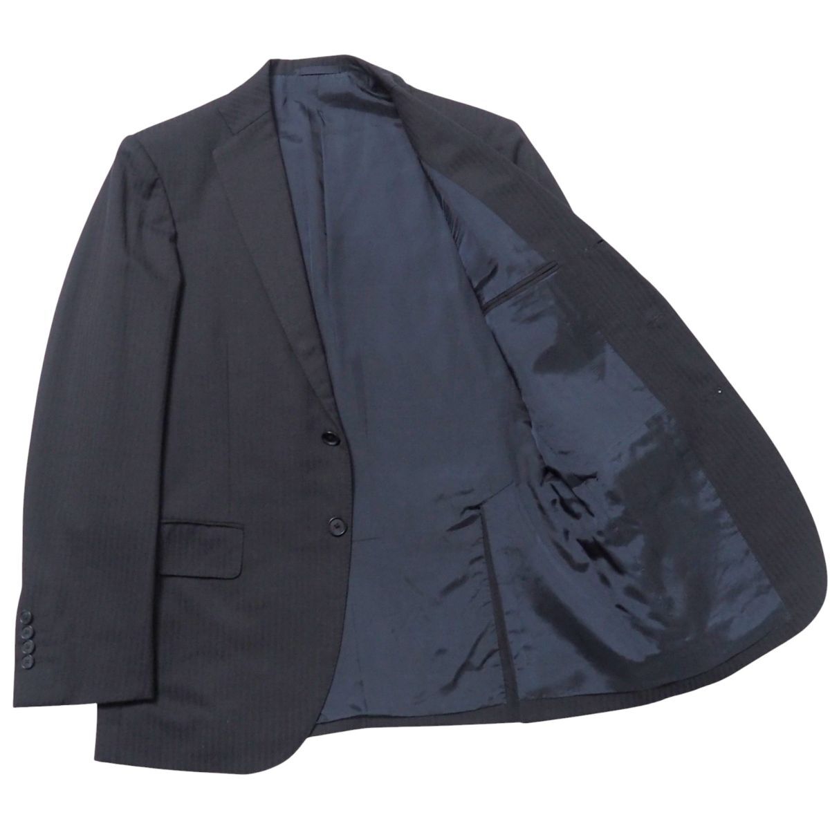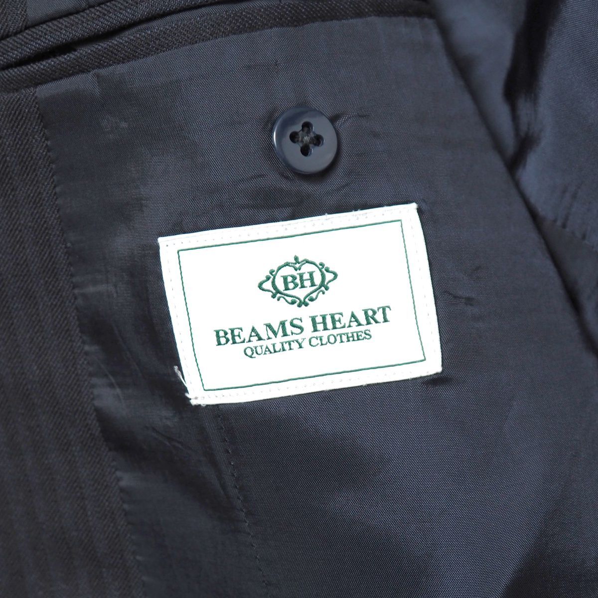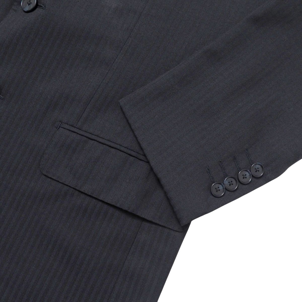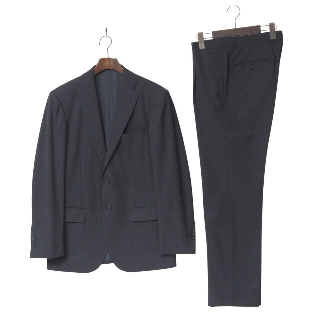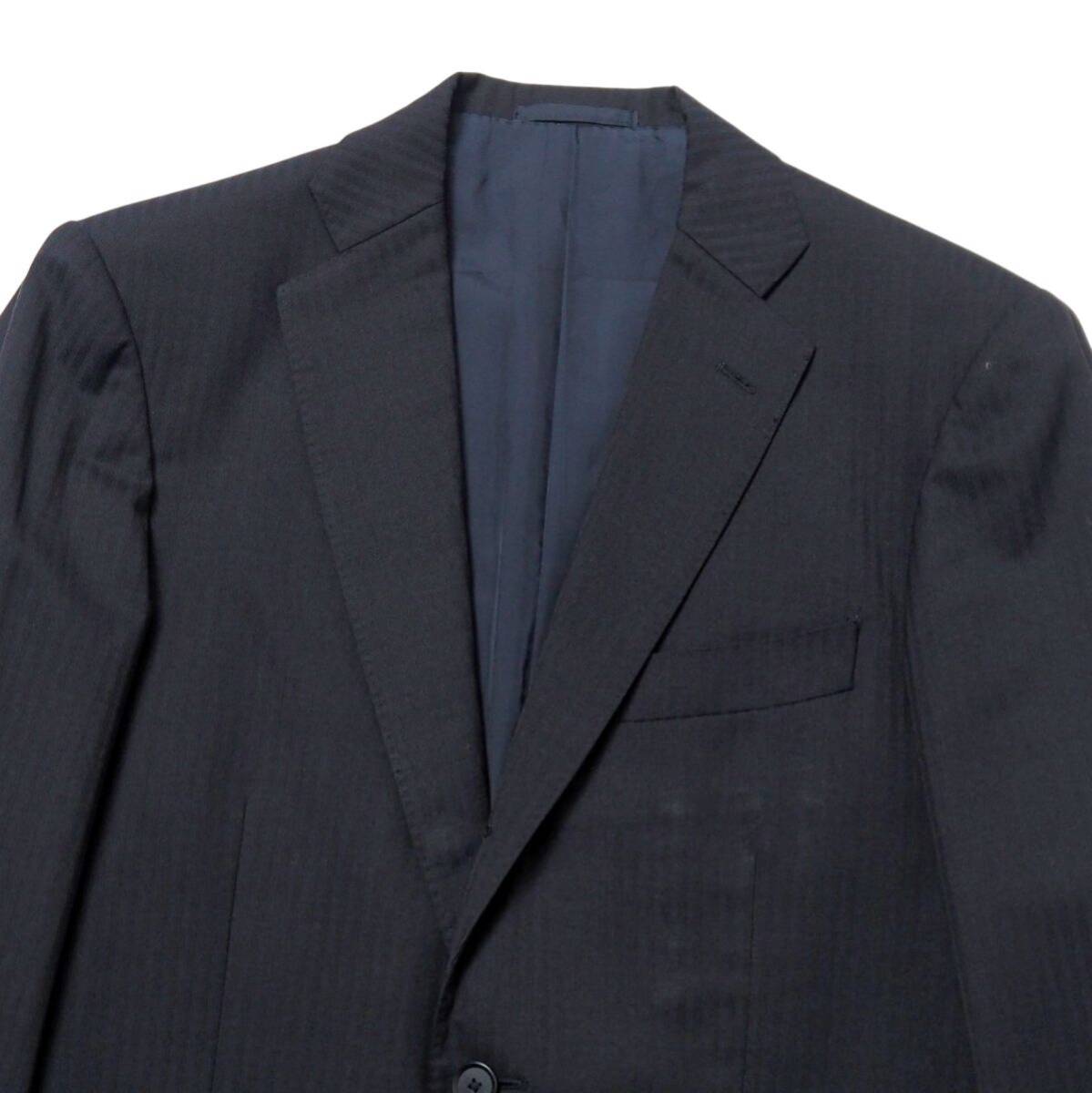 | TJ6310◎BEAMS HEART ビームス ハート ヘリンボーンストライプ 段返り3ボタン シングル スーツ セットアップ ジャケット パンツ 紺 46 | |||