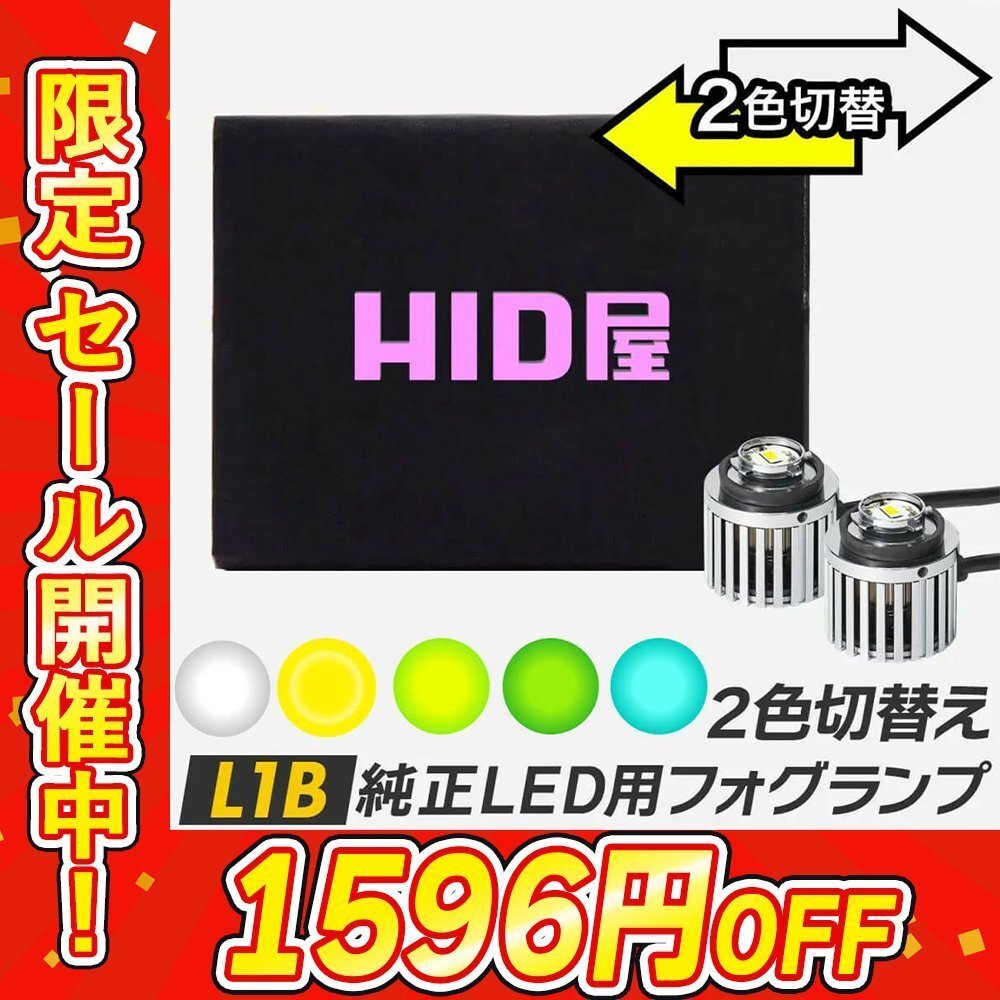 | 【仕様】 商品名: 純正LED用フォグランプ 2色切り替え バルブ形式: L1B ケルビン数: ホワイト 6500k / イエロー 3000k / レモンイエロー / ライムイエロー 明るさ: 4600lm(ホワイト)/ 4600lm(イエロー) / 5200lm(レモンイエロー)/ 5200lm(ライムイエロー)/ 3700lm(エメラルドグリーン) LEDチップ特注の明るいLEDチップ ボディ素材: エアロアルミ 防水防塵: IP65 消費電力: 30W 電圧: 12V/24V 保証: 2年保証 【付属品】 ・LEDフォグランプ×2 ・結束バンド×2 ・取扱説明書×1 ・専用工具×1 ・ネジ×2 【商品説明】 【リニューアル 2024年ver 配光改良版!】 純正の配光を再現"するために、LEDチップ(の配列)を改良しました! LEDチップの配列を一列にすることで、色切替えによる照射位置の"ズレ"を解消しました。 【商品説明】 HID屋から2色切り替え純正LED用フォグランプが登場。 カラーは「ホワイト×イエロー」、「ホワイト×レモンイエロー」、「ホワイト×ライムイエロー」、「ホワイト×エメラルドグリーン」からお選びいただけます。 照射光がワイドに広がり路面を明るく照らし運転時の視認性が抜群です。 また、カットラインもキレイに出るため照射光が対向車へ迷惑になることもありません。 ▼イエローの特徴 スタンダードなイエローはヘッドライトの光が届きにくい横方向へも光が広がり、走行時の死角を減らします。 また、路面の中央下部(センター手前側)を重点的に照射する配光で前方への視界が抜群です。 ▼レモンイエローの特徴 新色のレモンイエローは路面がよりクリアに明るく感じられ、走行時のドライバーの眼の疲労を軽減することが期待されます。 また、ライムイエローのような印象もある独特の色味により、路面の凹凸や白線がよりハッキリと視認できます。 ※車両のリフレクターとの相性によって配光(照射範囲など)にムラが出る場合がございますのであらかじめご了承ください。 ※本製品はバルブ形式L1B対応車向けの専用設計となっております。 その他のバルブ形式の車両にはお取り付けできませんので、予めご了承ください。詳しくは別途対応車種一覧をご確認ください。 ▼車検時のご注意 ・エメラルドグリーン ライムイエローは車検非対応です。主にドレスアップ用としてお使いください。検査時はホワイトに切り替えをお願いします。担当検査官によっては不適合となる場合もございますのでご了承ください。 ※本製品にはメモリー機能がついております。次回点灯時は消灯した際の色になりますので、車検を受ける際はホワイトかイエローにして点灯OFFにしていただけますようお願いいたします。 【注意点】 ■本製品で万が一取付ができなった場合は、ご返金いたしますので、お問い合わせフォームまたはメールからご連絡をお願いいたします。 ■取付前に必ず点灯確認を行ってください。 ■いかなる場合でも取り付けに掛かった工賃や、破損部品の弁償などは行いません。 ■お買い物ガイドに詳細が記載されています。 ■バージョンアップした商品は予告無しに外観が変わる場合がございます。あらかじめご了承ください。 対応車種一覧 ▼TOYOTA ・アクア R3.7~ MXPK1# ・カローラ R1.10~ ZWE21#/ZRE21#/NRE21# ・カローラクロス R3.9~ ZVG1#/ZSG1# ・カローラスポーツ H30.6~ ZWE211/NRE21#/2WE219H/MZEA12H ・カローラツーリング R1.10~ ZWE21#/ZRE21#/NRE21#MZEA12W ・クラウン H30.6~ AZSH2#/ARS220/GWS224 ・シエンタ R4.8~ MXPL10G/MXPL15G/MXPC10G ※フォグランプ装着車両のみ ・C-HR R1.10~ ZYX11/NGX10/NGX50 ・ノア R4.1~ ZWR90W/ZWR95W/MZWA90W/MZWA95W ※Zグレードのみ ・ハイエース 7型 R4.4~ GDH/TRH2##系 ・ハイラックス R2.8~ GUN125 ・ハリアー R2.6~ MXUA8#/AXUH8#/AXUP85 ※PHEV含む ・ピクシストラック R3.12~ S500U/S510U ・ピクシスバン R3.12~ S700M/S710M ・プリウス H30.12~ ZVW5# ・ヤリス R2.2~ MXPH/MXPA10・15/KSP210 ・ヤリスクロス R2.9~ MXPJ1#・MXPB1# ・RAV4 R3.12~ MXAA5#/AXAH5# ※アドベンチャー/PHV以外 ・ランドクルーザー300 R3.8~ FJA/VJA300W ・ルーミー R2.9~ M900A/M910A ▼HONDA ・ステップワゴン R4.6~ RP系 ・シビック R3.9~ FL1/FL4 ・フィット R2.2~ GR1/2/3/4/5/6/7/8 ※グレードLUXEのみ取付可 ▼DAIHATSU ・アトレー H3.12~ S700/S710 ・トール R2.9~ M900S/M910S ・ハイゼットカーゴ H3.12~ S700/S710 ・ハイゼットトラック R3.12~ S500P/S510P ※ハイゼットジャンボ含む ・タント R4.9~ LA650S/LA660S ※全グレード含む ・ムーヴキャンバス R4.7~ LA850S/LA861S/LA860S ※純正ハロゲン仕様車含む ▼SUBARU ・サンバートラック R4.1~ S500J/S510J ・サンバーバン R4.1~ S700B/S710B ※サンバーディアスを含む ・ジャスティ R2.9~ M900F/M910F ▼LEXUS ・UX250h/UX200h H30.11~ MZAH1#/MZAA1 ・NX R3.10~ AAZA2#/AAZH2# ※本製品はトヨタ、レクサスの純正バイカラーLEDフォグランプ搭載車両では装着できません。 ※上記の車種一覧に記載されていない車種についても、搭載されている純正LEDフォグランプに下記の「純正品番・刻印」があれば本製品の装着が可能です。 ・LH側:81220-12240/81220-02150 ・RH側:81210-12240/81210-02220 ※純正フォグランプレンズに下記の刻印がある車両は取付可能です。 ・KOITO12-611 【保証期間】 2年 / 保証書が