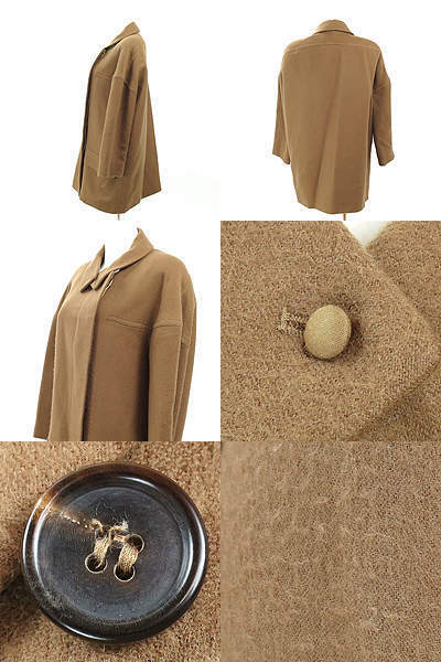 | ノーカラーに衿がドッキングしたお洒落なコート♪ 衿先をボタンで留めていただくデザインとなっております。 ボタンが隠れる比翼仕立てで余計な装飾がございませんので、 切替ラインが引き立てられます☆ 全体的に目立つ毛羽立ちが見られ、 前身ごろやお袖は毛玉の様な毛羽立ちとなっております。 裄丈約76cm バスト約114cm 着丈約77cm 【サイズ】:(34) 【素 材】:(バージンウール99%シルク1% 裏/キュプラ100%) 【 色 】:(キャメル) 【程 度】:(B) 管理番号 2299-20131220-003 154 001 | ||||