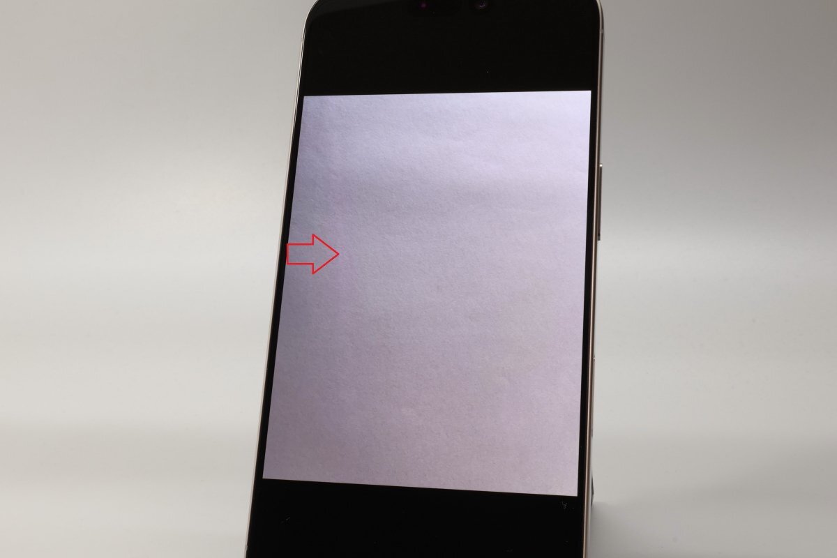 ・インカメラ撮影時、写真ともに縦(赤矢印)に光のラインが写り込みます(写真6 ※インカメラで撮影した写真を撮影してます)