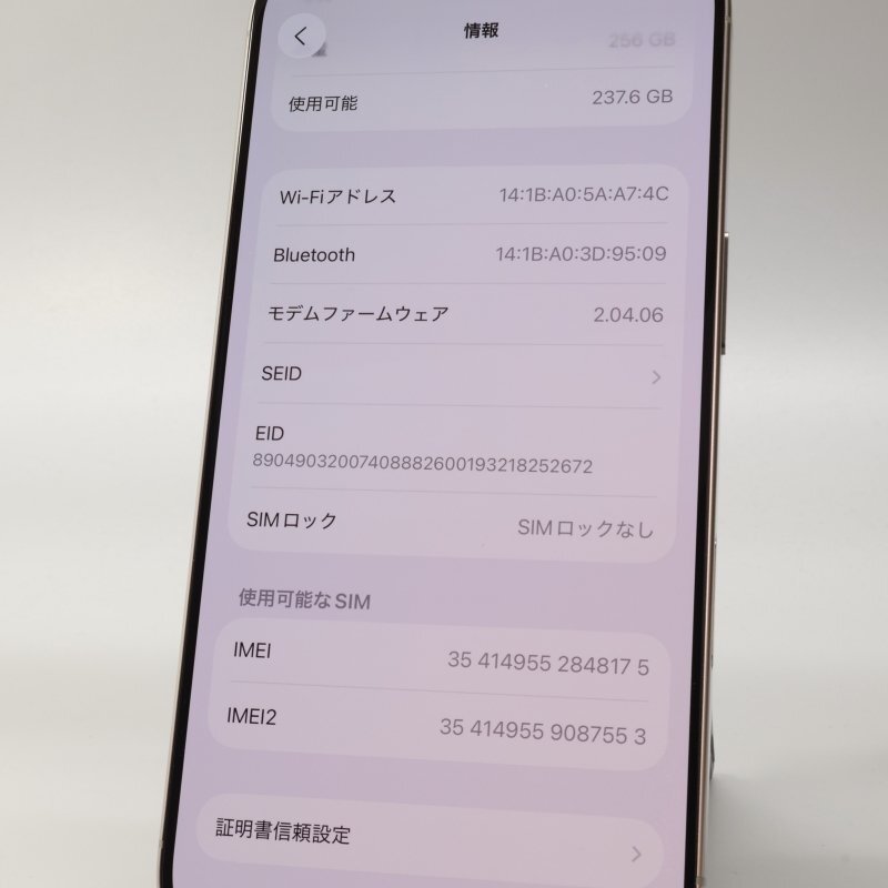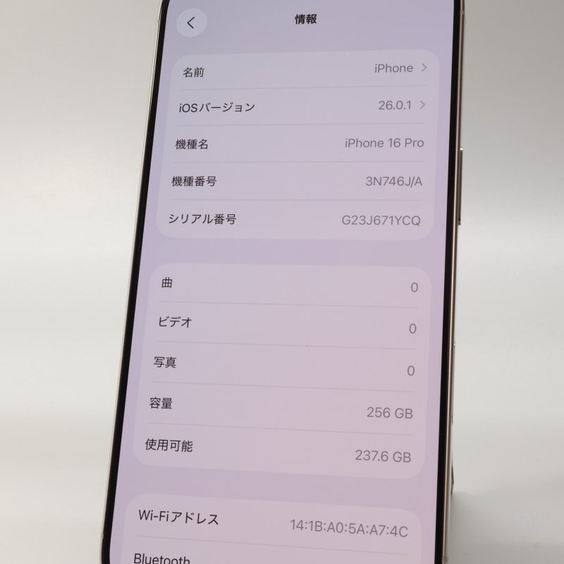 店頭展示品です。■機種 : iPhone16 Pro 256GB ナチュラルチタニウム A3292 3N746J/A