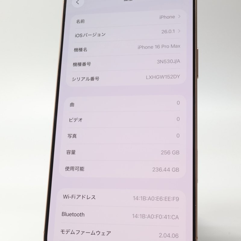 店頭展示品です。■機種 : iPhone16 Pro Max 256GB デザートチタニウム A3295 3N530J/A