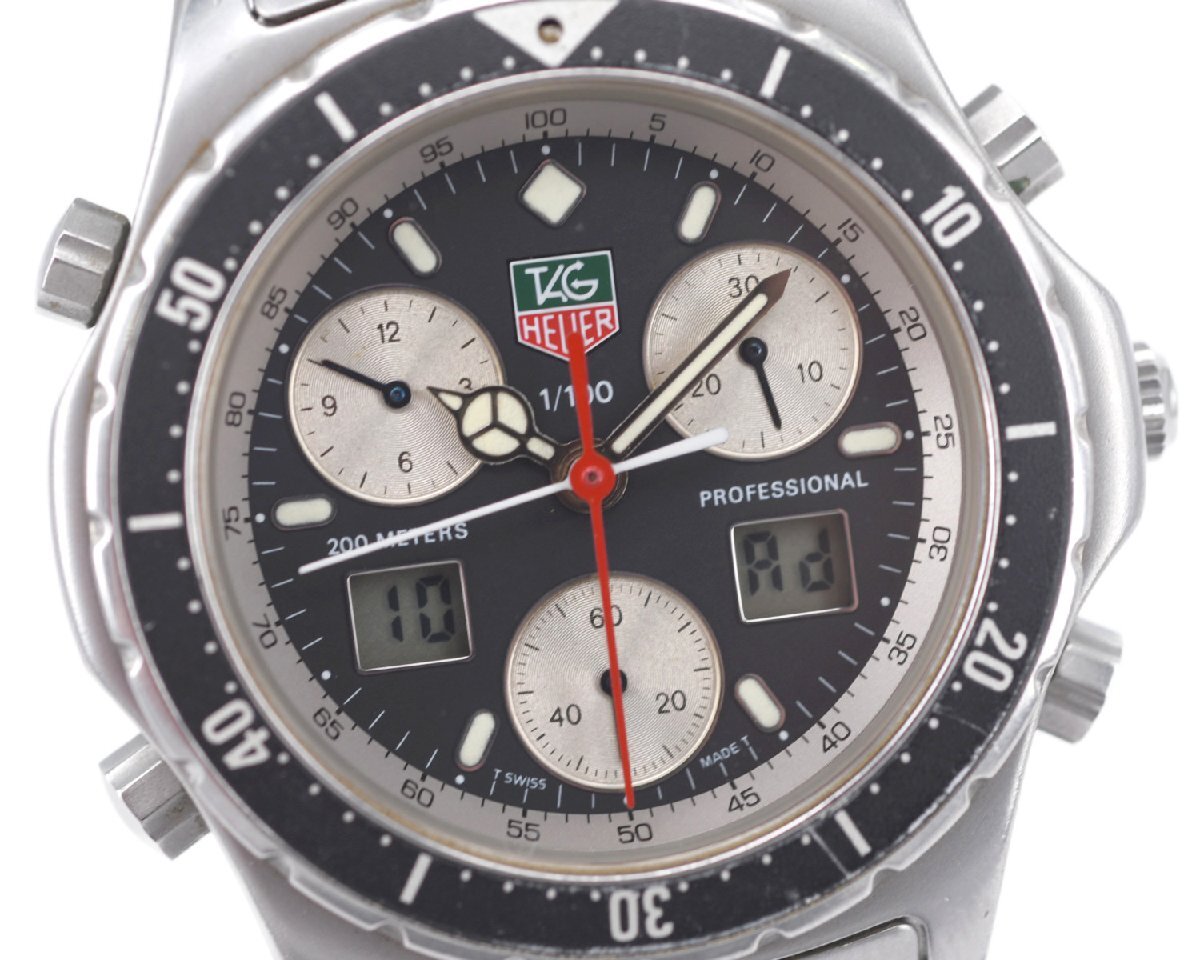 ナナハチヤは、掘り出しモノがいっぱいあります。 レア [中古品] 稼働品【TAG Heuer】タグホイヤー クロノグラフ 240.306 メンズ ブラック文字盤 メンズ クォーツ 純正ブレス 中古品のご案内です。 コンディションといたしましては、通常使用程度の中古商品でございます。 稼働品でございます。 時刻も合っております。 針回しもできました。 リューズの締め込みもできました。 ベゼルも逆回転防止が確認できました。 クロノグラフにつきましては、スタートすることができませんした。 リセットボタンを押すと、現在の位置に戻ってまいりました。 稼働品でご使用いただけると思いますが、OH歴などわかりかねますので、メンテナンスが必要な場合は、ご自身でお手配いただきますようお願い申し上げます。 人気の定番商品をお安くご提供させていただきます。 ぜひ、ご検討ください。 当店の商品につきましては、全商品お客さまもご納得の掘り出し物オークション・販売価格です。 ぜひ、ご検討ください。 |