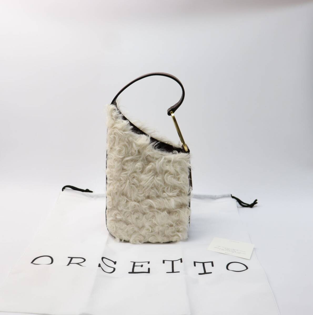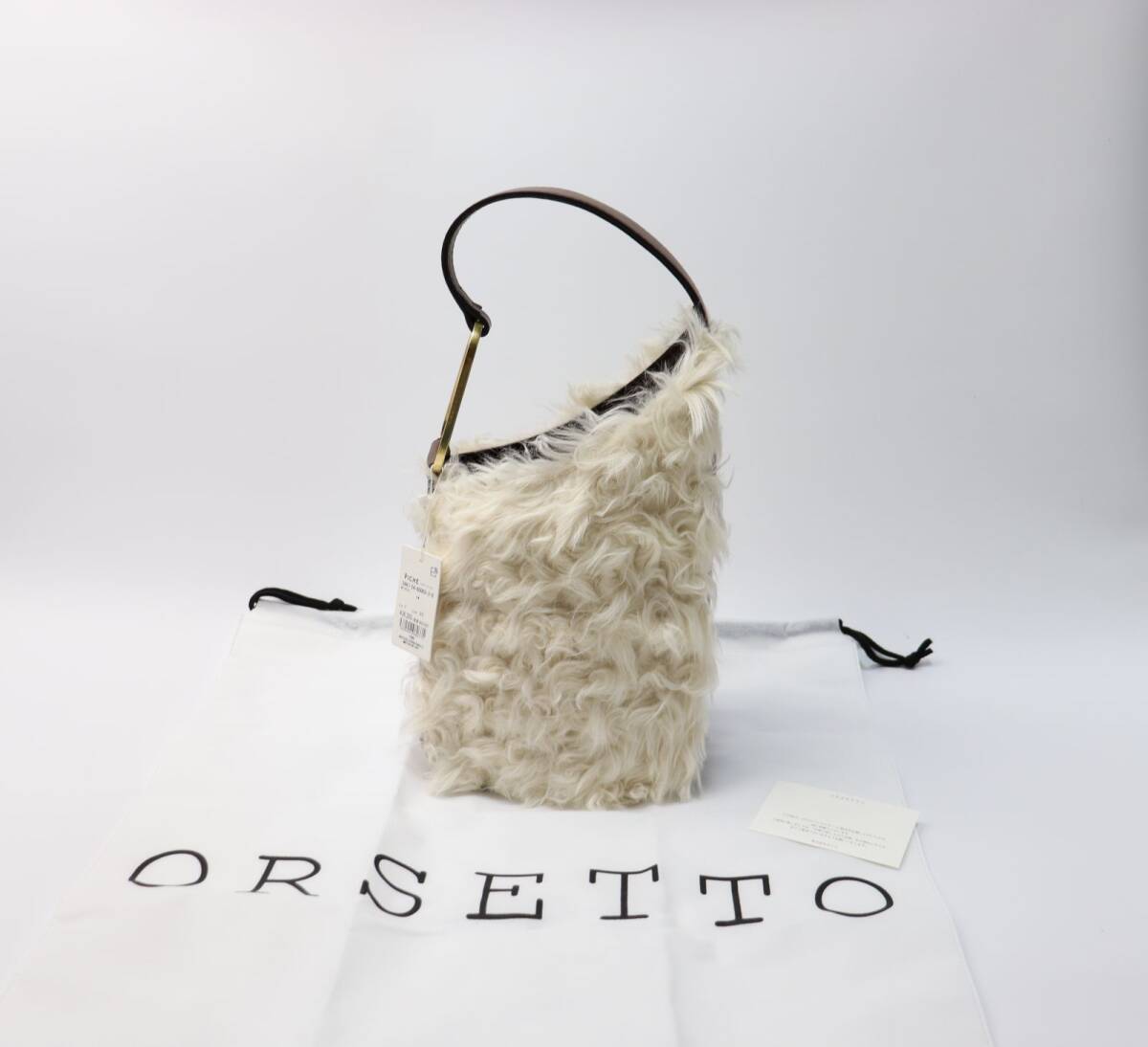 ORSETTO (オルセット) ファーレザー ワンハンドルバッグ ファーと本革のコンビネーションが華やかな、素敵なバッグです。 アイテム説明 主役級 華やかファーバッグ シーズムード満載のレザーファーバッグ。 ファー×持ち手のゴールドパーツが高級感を演出し、一気に華やかな仕上がりに。 普段使いはもちろん、いつもよりちょっとオシャレにしたいパーティや食事会などのシーンでも大活躍。 コンパクトな見た目ですが、ペットボトルも入る嬉しいサイズ感も魅力的。 内ポケットも搭載しており、使い勝手の良さもおすすめ。 ◆カラー:アイボリー、ブラウン ◆素材:ファー モダクリル80%、ポリエステル20% 皮革部分 牛革 ◆サイズ(約):タテ18~27cm ヨコ17cm マチ12cm ◆仕様: ・内オープンポケット×1 ◆付属品:保管袋、ケアカード ◆定価36,300円 |