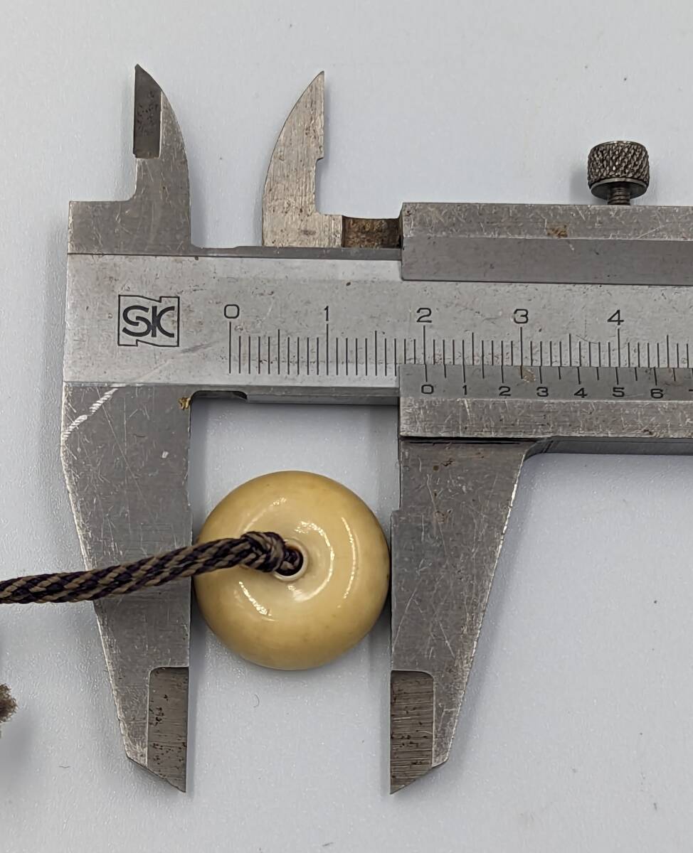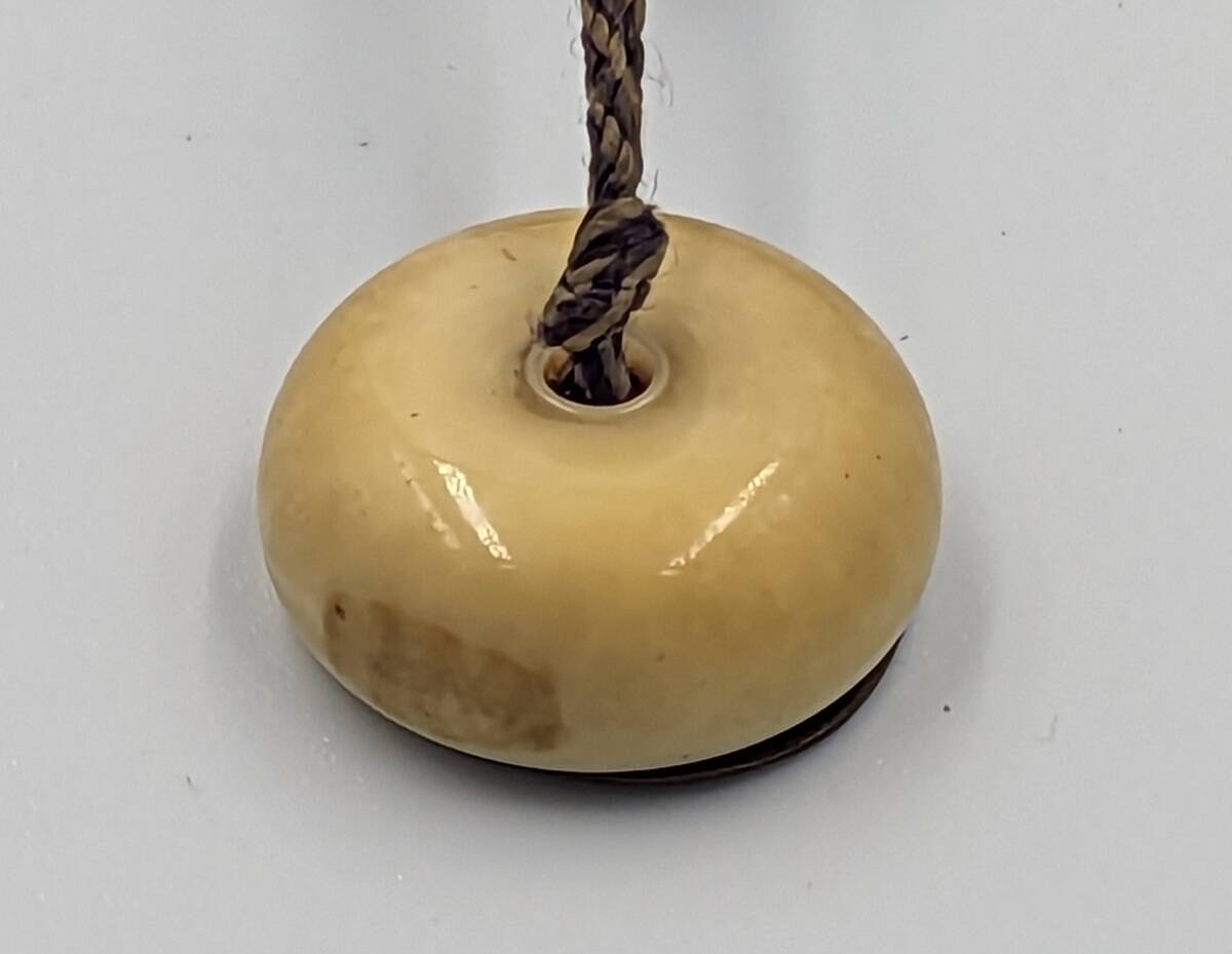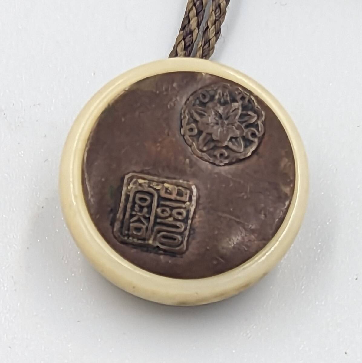 饅頭根付には、天然素材に銅蓋がついており、家紋と落款の彫刻が施されています。