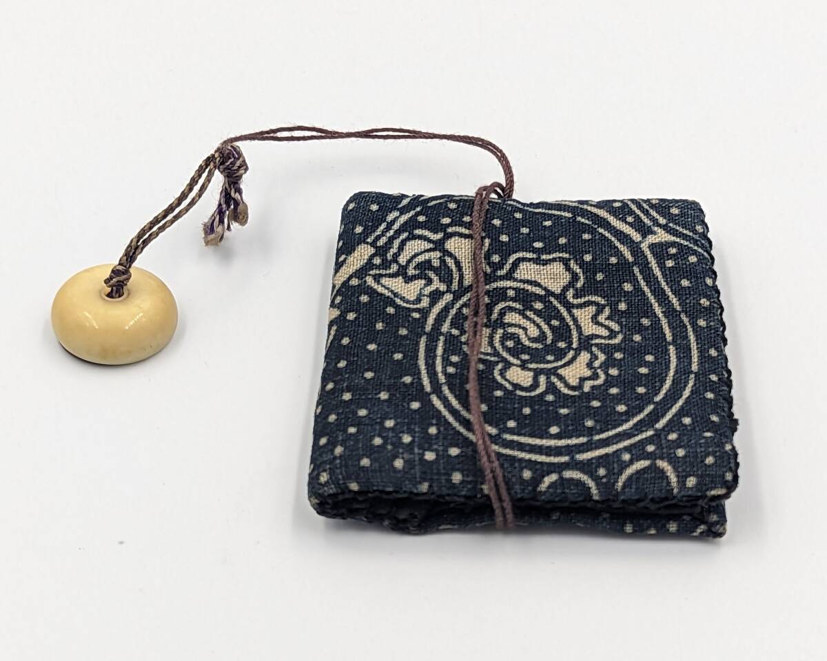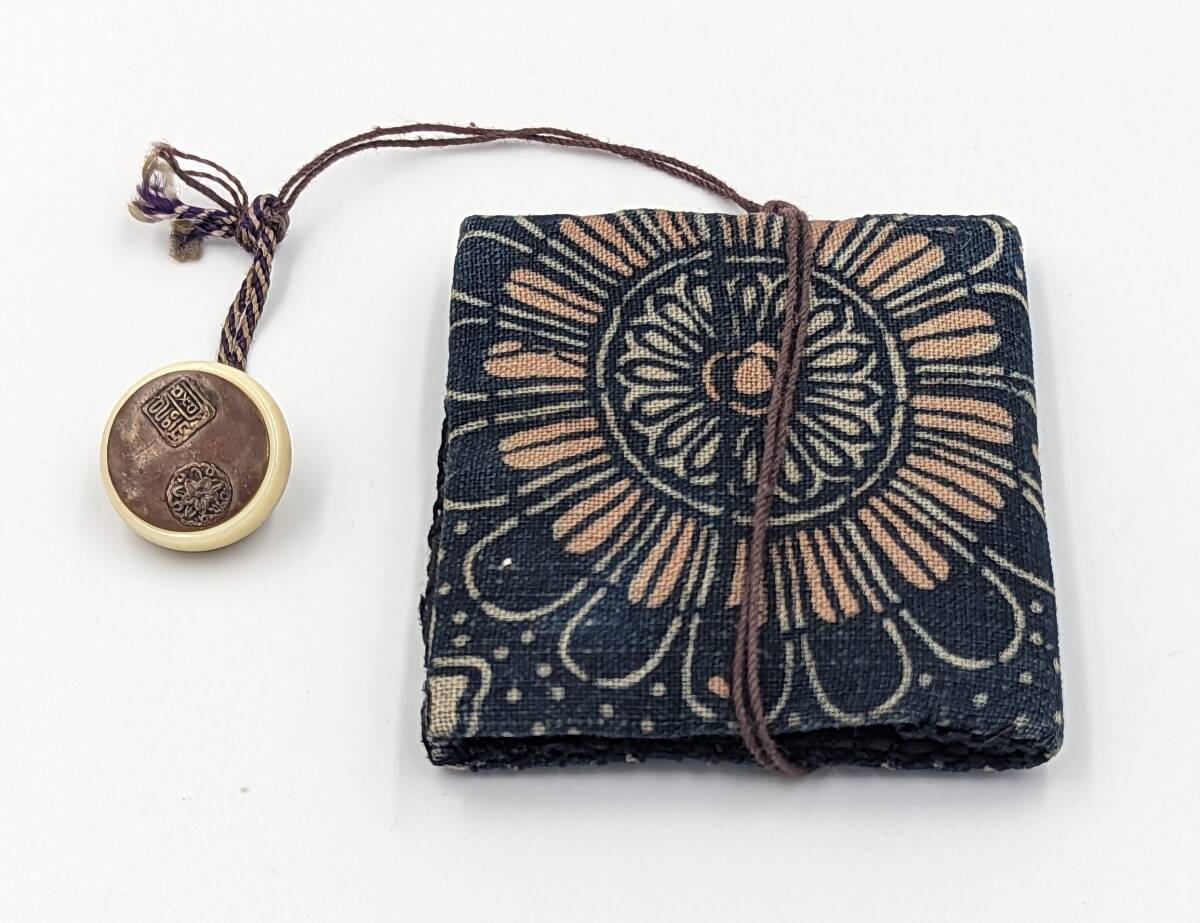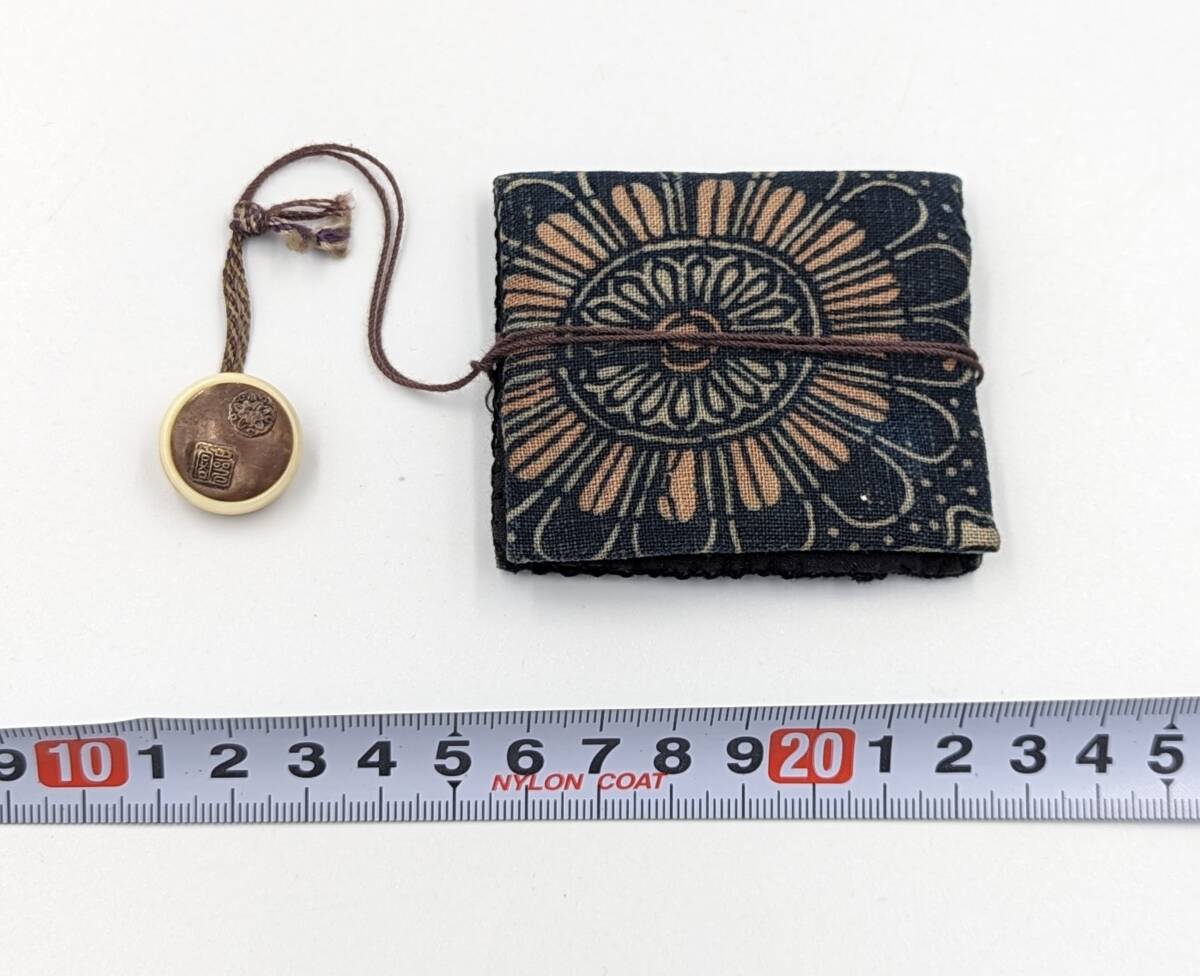 時代 薬入れ 小銭入れ 古布 饅頭根付 銅蓋 天然素材牙材 獣牙 提物 印籠 更紗 コレクターから放出