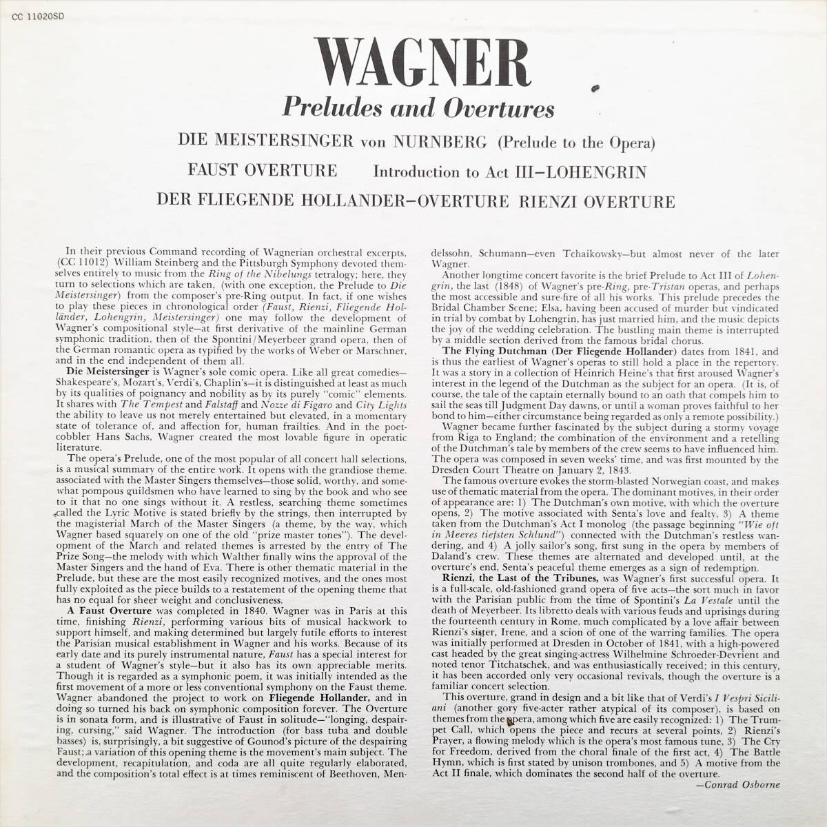 ここに出品するのは「Command Classics」が制作した初期のアルバムからスタインバーグ指揮ピッツバーグ交響楽団による「ワーグナー序曲集」のオリジナル盤です。