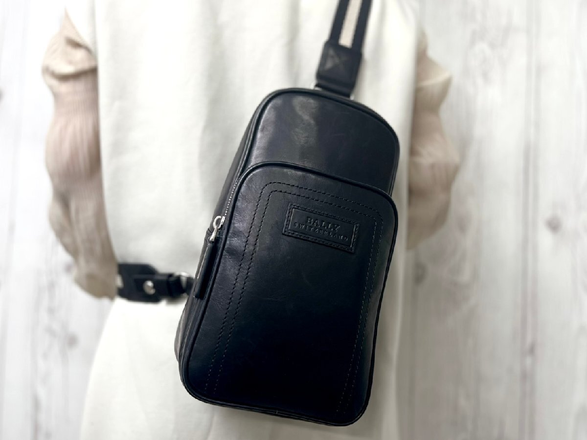| 極美品 BALLY バリー ボディバッグ ショルダーバッグ バッグ レザー×キャンバス 黒 メンズ 92478Y | ||