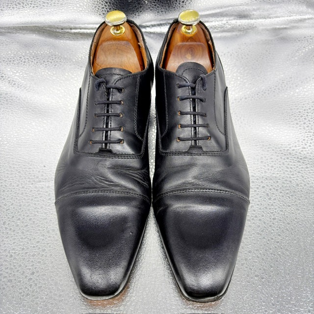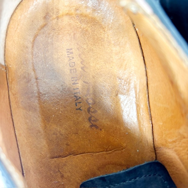 ご覧いただき、ありがとうございます。 オシャレで高級感のあるイタリア製Rossiのビジネスシューズです。 デザイン性:機能性共に定評のある商品です。 1足押さえてあるとファッションの幅も広がり大活躍するお勧めの商品です。 中古品のため、スレや傷、ヨゴレ等ありますが、その分お値打ちにしております。 詳しい状態は画像でご確認ください。 商品のサイズについて 表記サイズ 39 約24.5cm アウトソール全長 約27.4cm 全幅 約8.3cm (素人採寸) ●状態①「外観」 履きジワ、着用に伴う擦れ、傷がございますが、着用に支障はございません。 くわしくは画像で確認ください。 ●状態②「ソール・インナー」 インソール内ロゴ残っています。 ●その他・付属等なし、シューズキーパーは撮影用です。 | |||