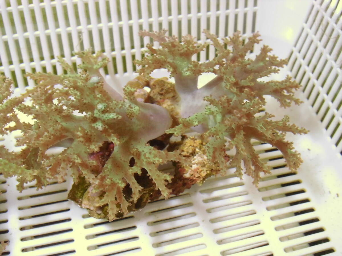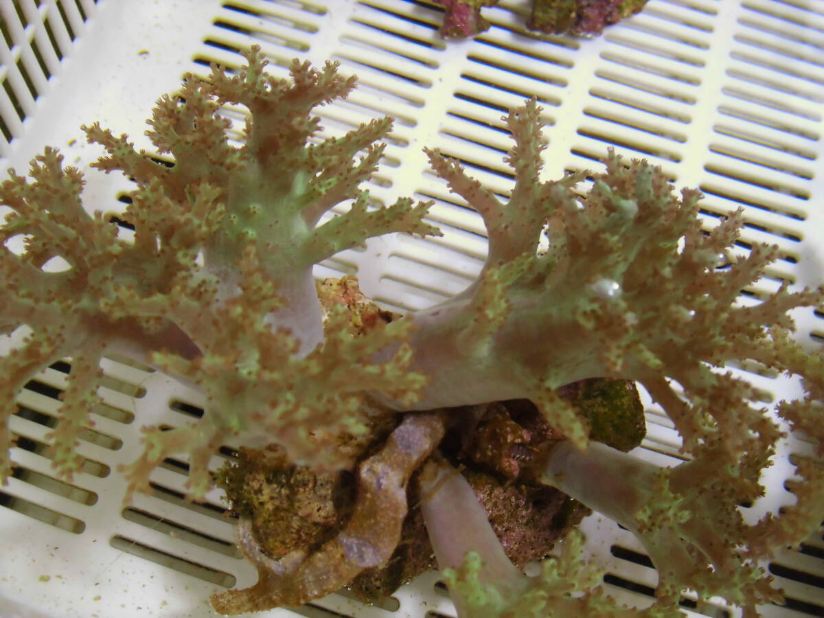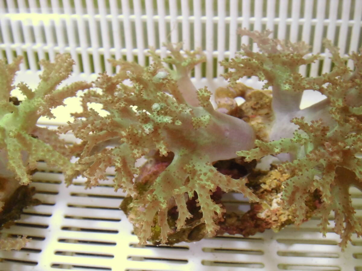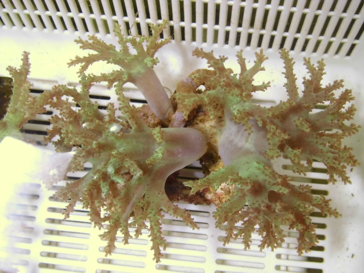 | 極美!! 石垣島採取・ナグラカタトサカ・グリーン・017 (土台含む約14cm、3本付)ソフトコーラル 初心者サンゴ簡単 | ||