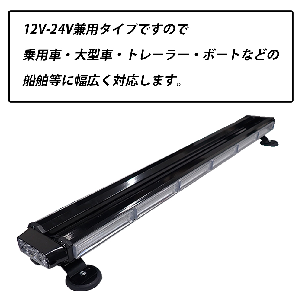 | 12V-24V兼用タイプですので 乗用車・大型車・トレーラー・ボートなどの船舶等に幅広く対応します。 シガーソケットに接続するだけの簡単取り付けです。 操作もシガーソケット部の2種のスイッチによりシンプルに様々な 点灯モードでご使用いただけます。 切替スイッチを押すごとにモードが7パターン変化します。 警告灯/緊急表示灯/防犯パトロール灯/作業灯/誘導灯・・など 様々な用途に使用可能です。 LED発光回転のためモーター作動音が無く騒音の問題がありません。 コードの長さ約3mのロングタイプ。 取り付け面には強力マグネット・保護に役立つゴムキャップ付き。 ■点灯色:黄色 ■対応電圧:10-30V ■本体サイズ:横94.5cm×幅11.5cm×高さ4cm(高さ脚含む 8cm) ■点灯パターン:7パターン(点滅・点灯・回転・流動等) ■コード長さ:約3m |
