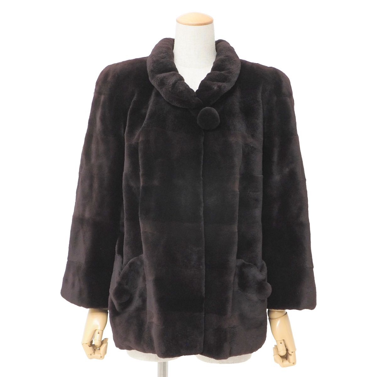 | GS5788◇サガミンク 銀サガ Josephine シェアード ファーコート ファージャケット ぽんぽん装飾 ハーフ丈 サイズ9 毛皮 ブラウン系 | |||