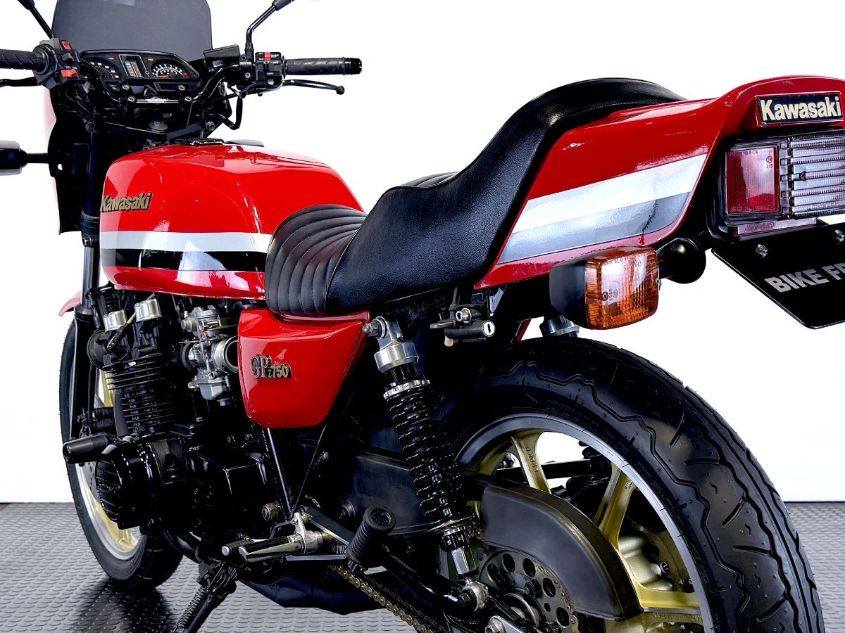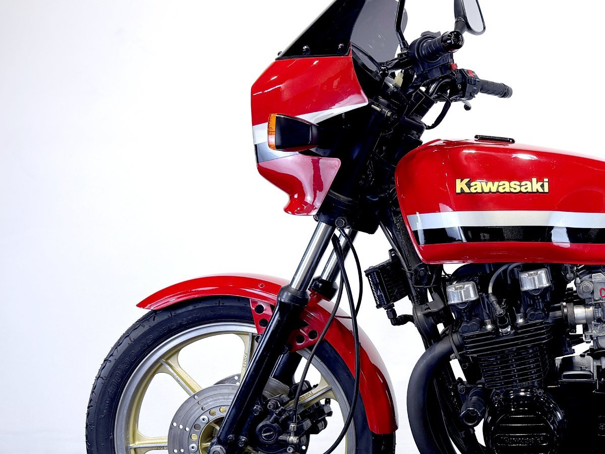■ Z1000Rジュニア登場! KAWASAKI Z750GP [KZ750R] カスタムを販売開始! ■ 輸出仕様のフォルムが'80sカワサキっぽさ全開! ■ ザッパー系Z750FXのエンジンを当店で新規スワップ&腰上オーバーホールで絶好調! ■ 外装は当店ブラッシュアップでパリッと復活! ■ DFIはケイヒンCRキャブファンネル仕様+ウオタニSP2にチェンジ! ■ マフラーはMISTY MID-KNIGHT 旧モナカ管!モリワキエンブレムはご愛敬! ■ ホイールはゴールド&シルバーエッジに! ■ 新品タイヤは'80sパターンを忠実に再現した DUNLOP K300GPをチョイス! ■ 新品リアサスはDAYTONAアルミ削り出しアジャスタブルリアショック! ■ 当時物JMCバックステップに段付きタックロールシートがベストマッチ! ■ ラウンドオイルクーター、フェンダーレス、スクリーン、ハンドル&ポスト他改多数! ■ 一際目を引く'80sカワサキ好きにはオススメの一台! |