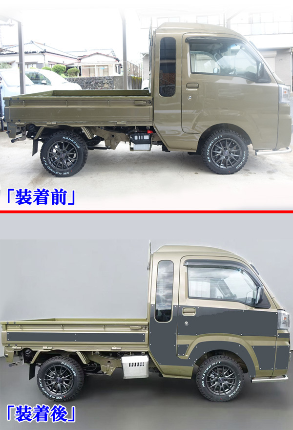 | ダイハツ ハイゼットジャンボ S500P S510P 前期後期共通 キャビン部分&荷台三方開部分 サイドデカール シール サイド シルバーグレーデカール デザイン PVC材質 | |