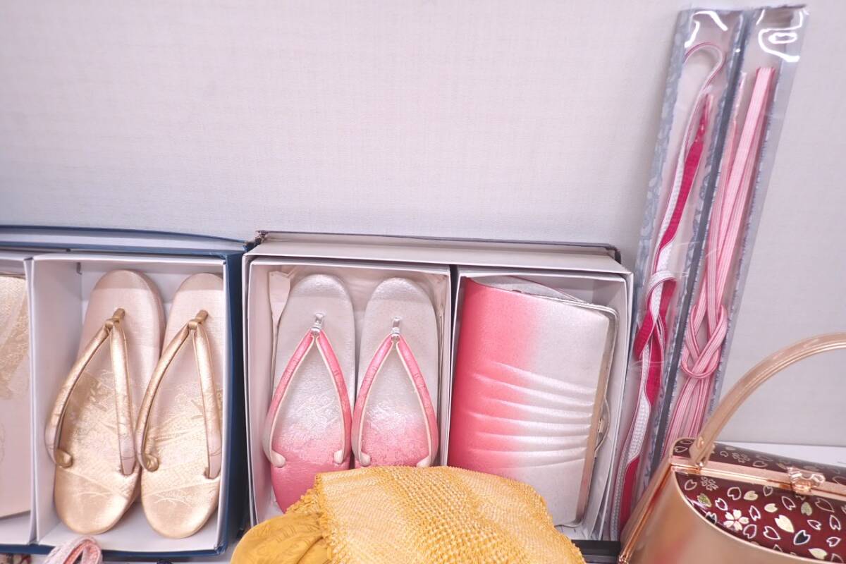和装小物 大量まとめ 正絹 帯締め 帯揚 羽織紐 和装草履バッグ 下駄 重ね衿 半襟 金糸 銀糸 泥染 博多織 ビーズ帯締め がま口 | ||||