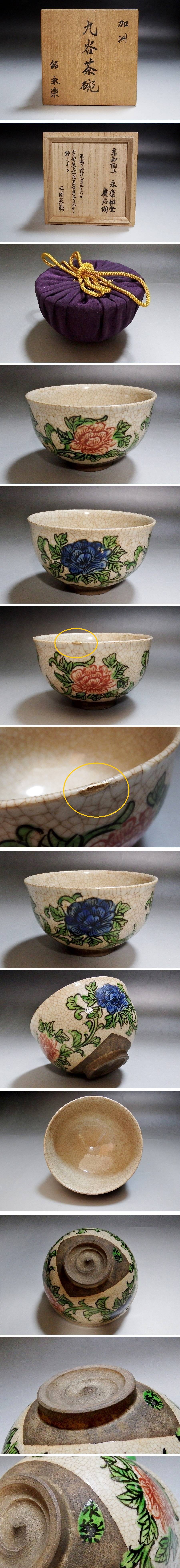 ◇◆ 十二代永楽善五郎 ◇◆ 19世紀に活躍した京焼の陶芸家。 千家十職の一つ、土風炉師・善五郎の十二代である。江戸後期を代表する陶芸家の一人永樂保全(十一代善五郎)の長男で、幼名は仙太郎。十二代善五郎を襲名したのは1843年であり、1871年に息子の得全に善五郎の名を譲って隠居し、以降は善一郎と名乗った。 ◇◆真作保証 ◆状態◆ 金継有り。 ◆サイズ◆ 作品サイズ約 口12.4cm 高さ7.2cm 高台4.8cm ◆付属◆ 仕覆袋・識箱 焼物の性質上、くっつき、釉ぬけ、窯スジ、窯へこみはご承知の上入札お願いします。 その他にも趣ある物を出品しておりますので御観覧頂けましたら幸いで御座います。 |