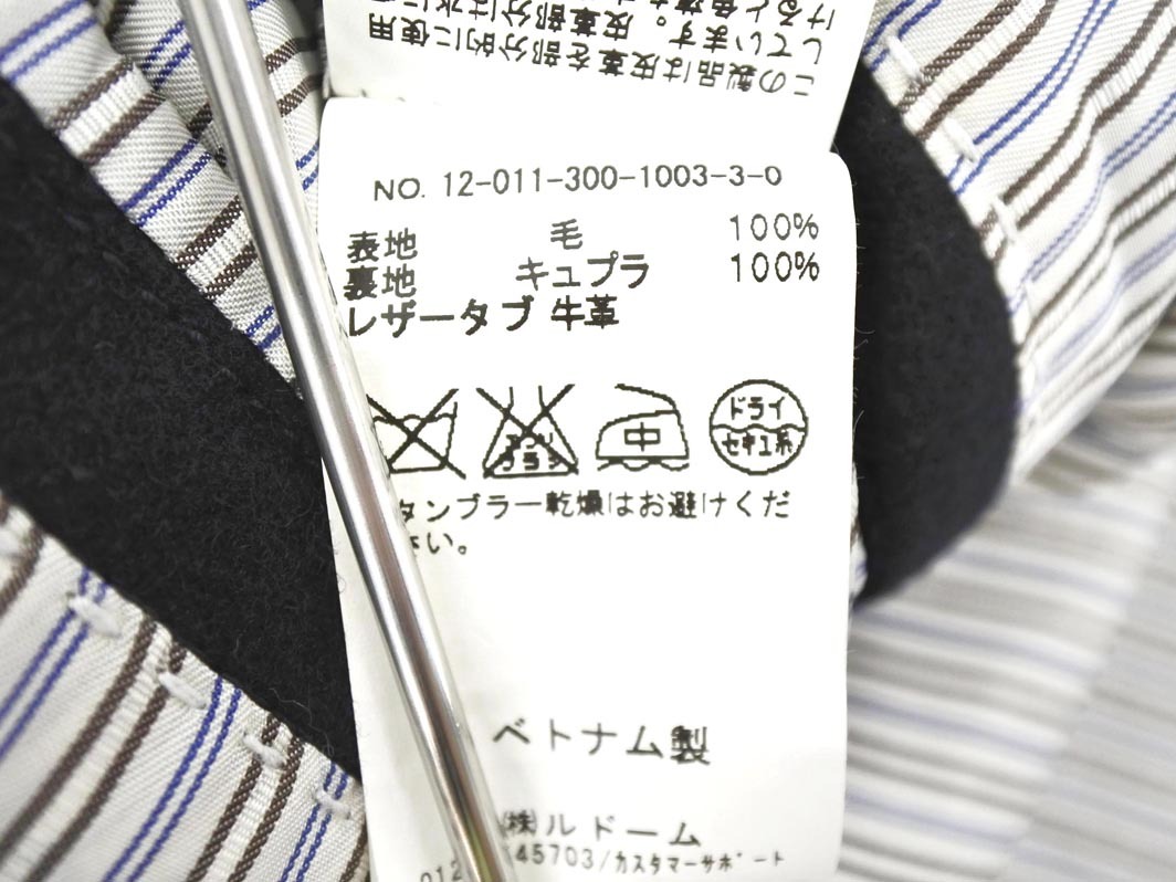 | 商品の状態 | 裏地:あり 前面・内襟に薄ヨゴレがございます。 (各箇所のヨゴレやダメージに関しましては、写真をご参照ください) 他に状態の気になる箇所はございません。 全体的に見ると良い状態のお品です。 (当方管理番号:thafk210117-t) | ||||||||||