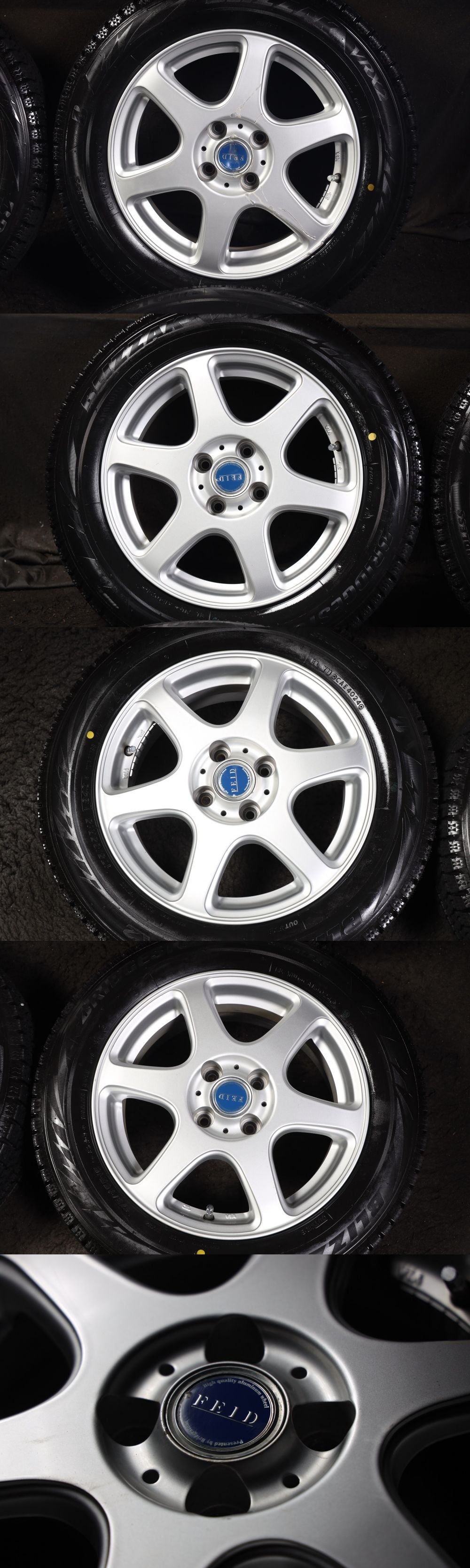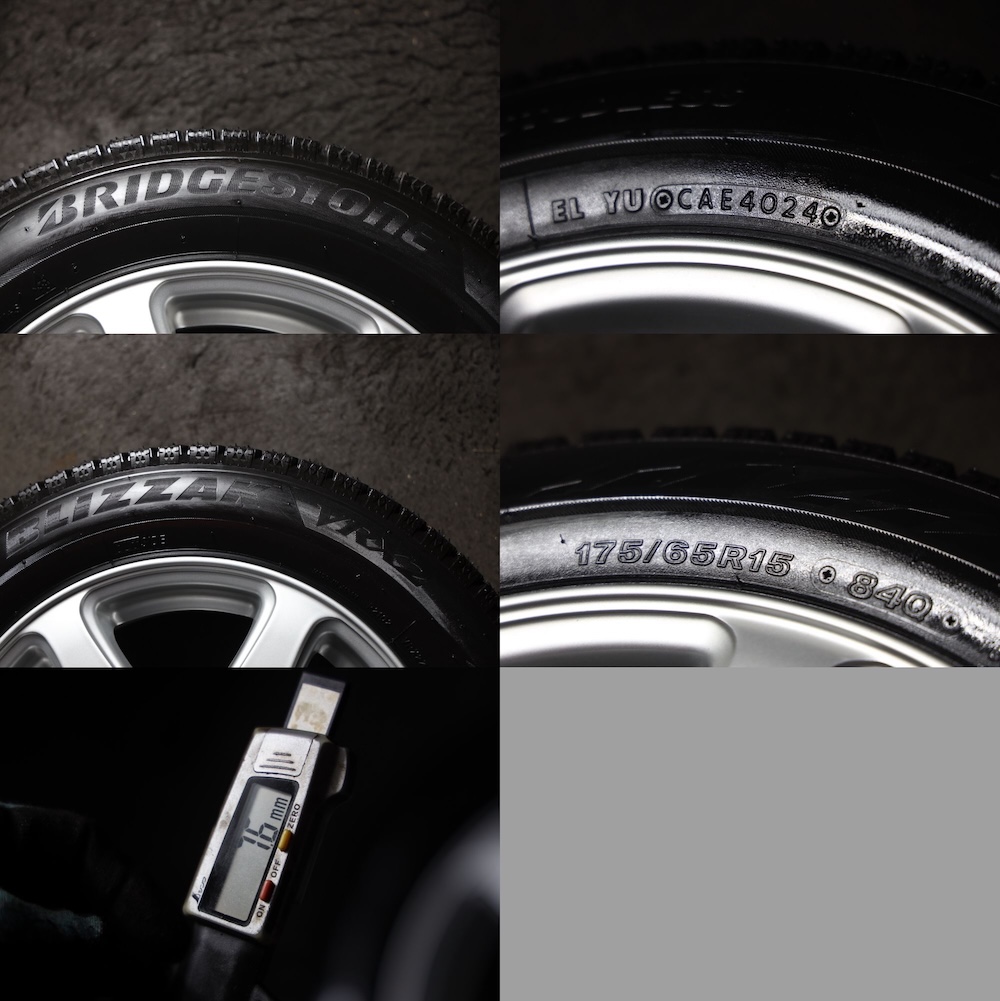 タイヤはBRIDGESTONE BLIZZAK VRX2 で山は画像で判断ください。新品に近い状態だと思います。新品時のイボが残っています。