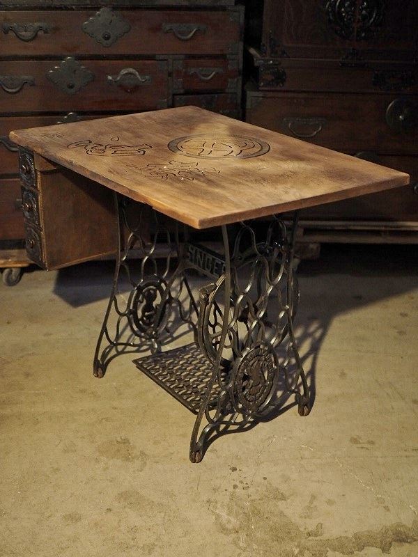 | アンティークSINGERミシン リメイクテーブル 古録展 送料別 Lサイズ 中古 品番F4566 | |