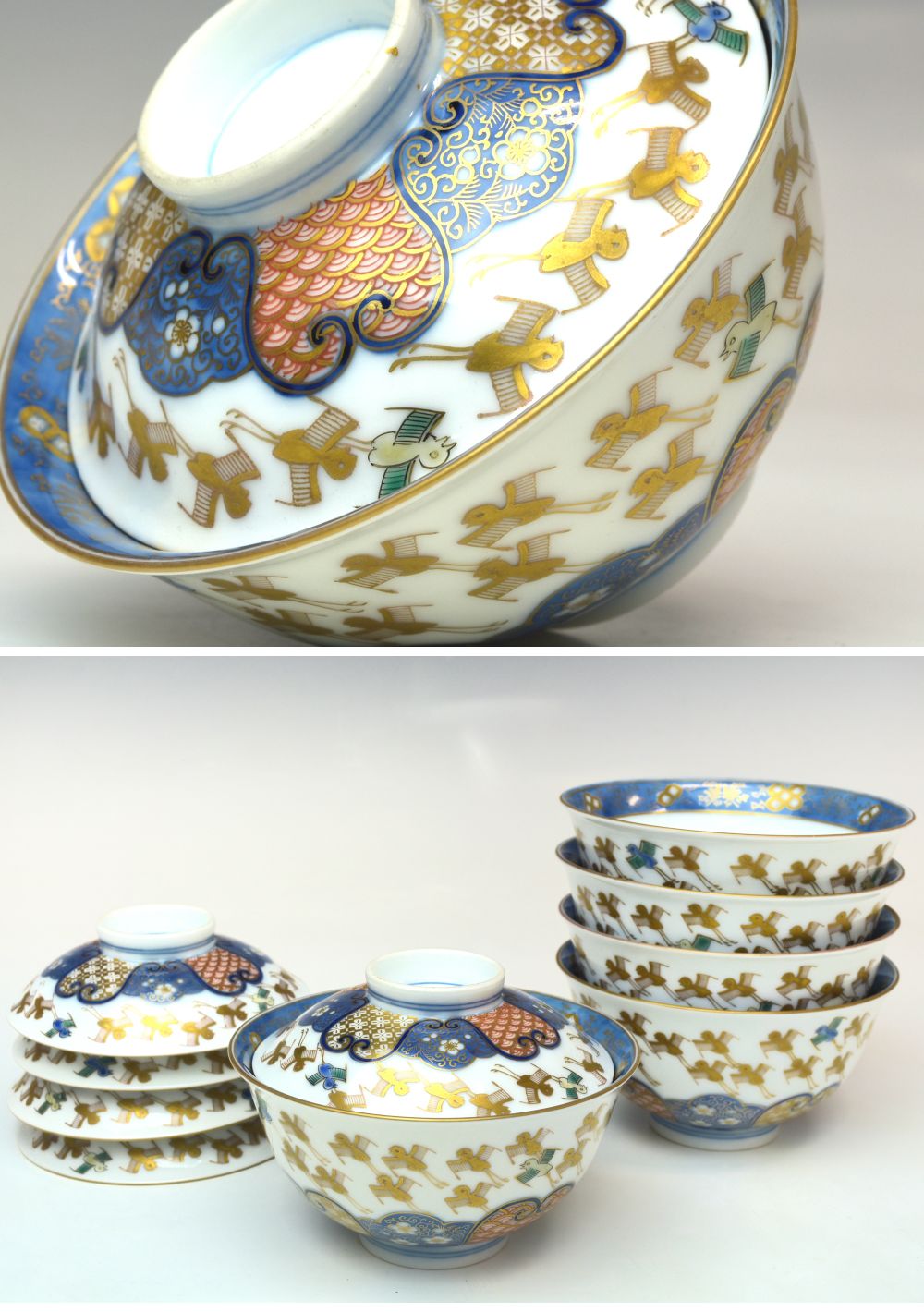 | 商品名 | 時代【オールド香蘭社】『細密小紋に千鳥図蓋茶碗五客』 直径11,5cm 本物保証 E2241【趣楽】 | ||