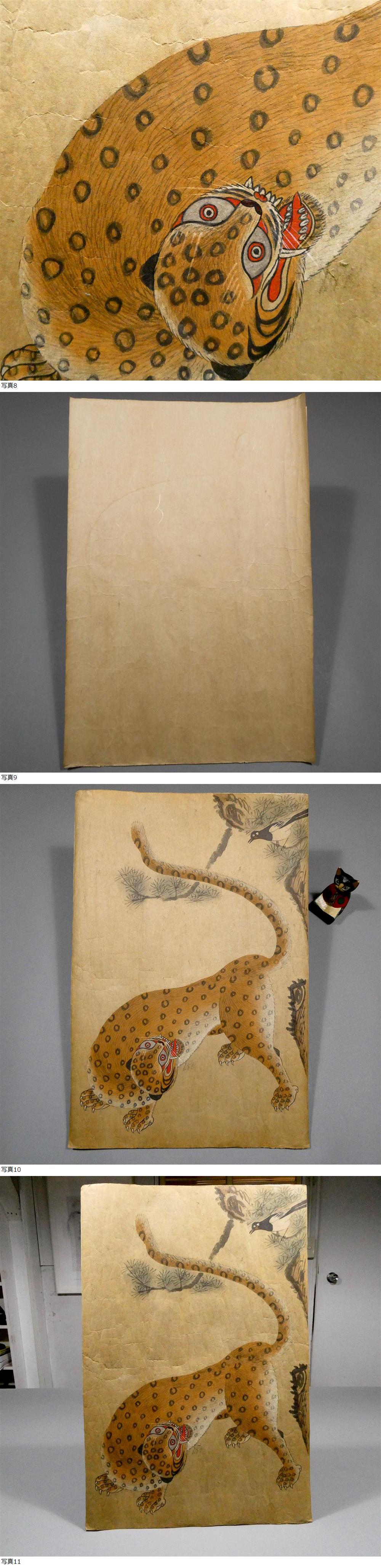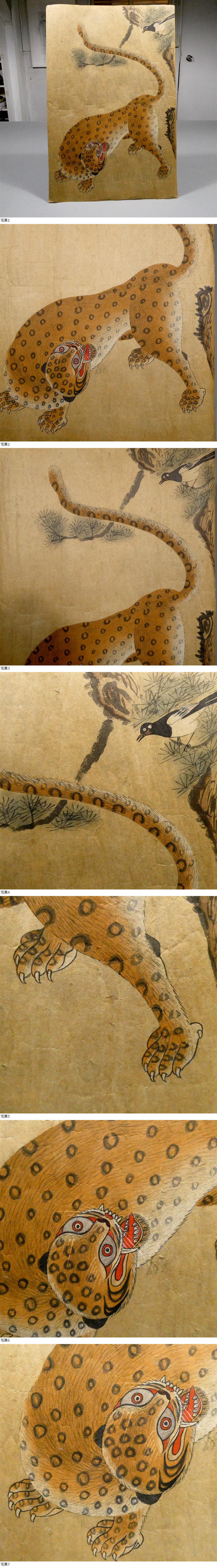 ■ 朝鮮民画 肉筆古画 「鵲虎図」 地上の厄災を払う虎 吉報を運ぶカササギ 厄払 魔よけ 開運 李朝 ■