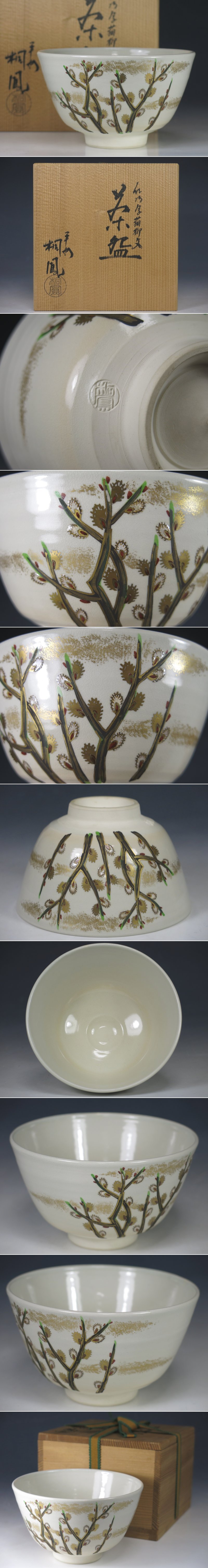 | 商品名 | 手塚桐鳳 仁清写猫柳文茶碗 京焼 共箱 茶道具 |