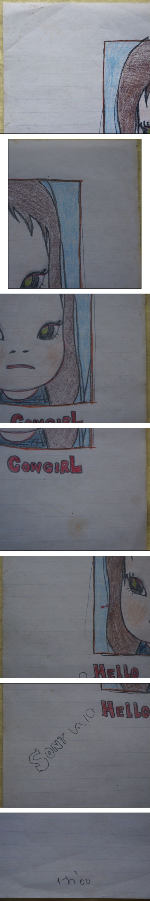 | 商品説明 | 奈良美智の色鉛筆、グラファイト(黒鉛)/紙の肉筆原画です。2000年に「Hello Cowgirl」というタイトルで描いた作品です。ノートのような紙に描かれています。タイトル左には「SONY VAIO」、下にサインがあります。東京、赤坂の著名な鑑定機関「Rabbit Hills」の認証証明書(英語と日本語の両方)が付属し、真作であることを証明しています。 制作年:2000年 サイズ:21.5x27.7cm 材料:色鉛筆とグラファイト/紙 来歴:小山登美夫ギャラリー、個人蔵(香港) (以上、Rabbbit Hills認証証明書より) <額縁について> 落札後はお名前、住所等の入力と同時に、額縁の要不要をお知らせください。その後こちらから送料を入力しますので、それまでご入金はお待ちください。即決で落札された場合は、額縁代、送料とも無料になります。 <注意事項>**必ずお読みください。下記の事項に同意された方のみ入札してください。** ・後のトラブル防止のため、新規の方、悪い評価が全体の5%以上ある方、および落札者の都合によるキャンセル歴が3回以上ある方は入札をお断りします。入札された場合は分かり次第入札を取り消しさせていただきます。新規の方で、どうしても入札したいと言う方は、質問欄に氏名、住所、電話番号をお知らせ下さい。(回答はしないので公開はされません) ・疑念を持ったままの入札や、安易な入札・落札は絶対にしないでください。 ・万一1ヶ月以内に信頼ある美術品鑑定機関により贋作と判定された場合は当方で判定書類精査後に返金に対応します。書類を発行しない機関は不可です。鑑定費用は落札者の負担となります。 ・終了後、24時間以内の返信が出来て土日祭日を除く営業日3日以内にお振込み可能な方のみ入札をお願いいたします。分割払いはできません。 ・落札直後のキャンセルは一切お受けできません。 |