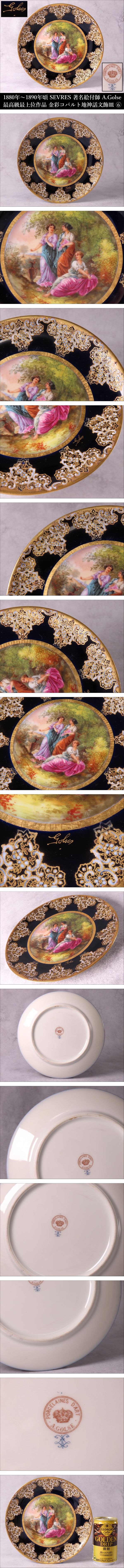 【ONE'S】1890年頃 SEVRES セーブル磁器 著名絵付師 A.Golse アンドレ・ゴルス 最高級作品 金彩コバルト地 神話文 飾皿 ⑥ 西洋美術 | |||