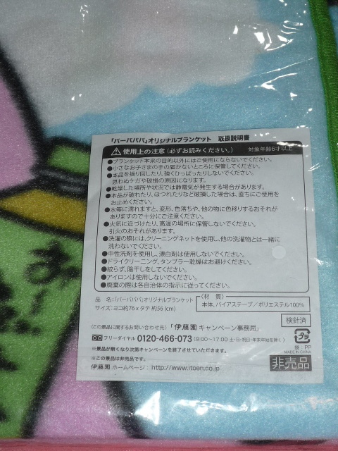 ☆商品説明☆ご覧いただきありがとうございます^^ 伊藤園オリジナル!バーバパパキャラクターの非売品のオリジナルブランケット。お~いお茶を持ったバーバパパの絵柄でと~ってもカワイイですよ♪大きさはタテ 約56cm、ヨコ 約76cmです。コレクション用として袋に入れたまま大切に保管していましたので、未使用でたいへん綺麗な状態ですが家庭での保管ですのでご理解いただける方のご入札をお願い致します。 ☆発送方法☆ 定形外郵便、ゆうぱっく ☆コメント☆ ノークレーム、ノーリターンでお願いします。ご不明な点がございましたらお気軽にお問合わせ下さい。他にもバーバパパキャラクターグッズたくさん出品しております☆ 良かったらご覧下さいね*^^*