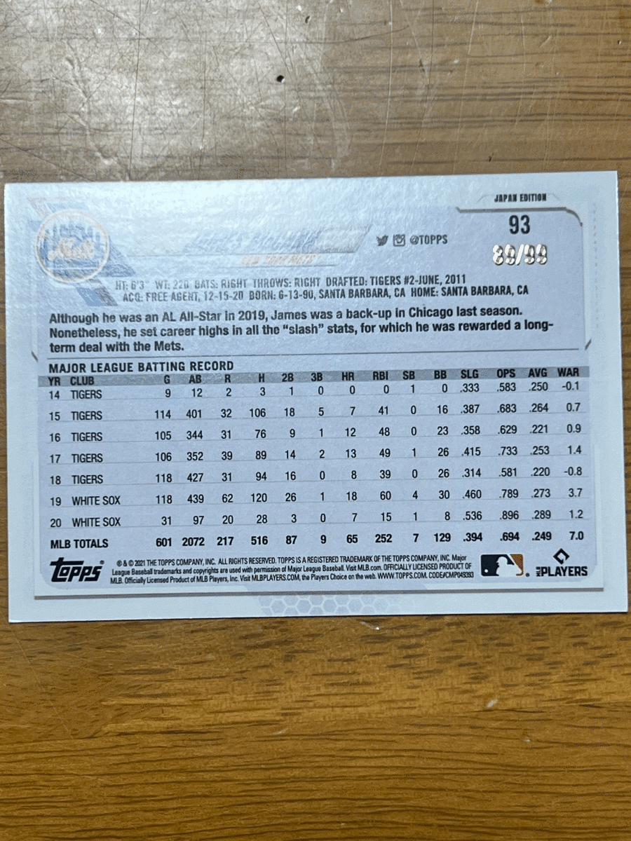 2021 Topps Japan Edition ジェームズ・マッキャン James McGann Cherry Blossom Parallel /99 #93