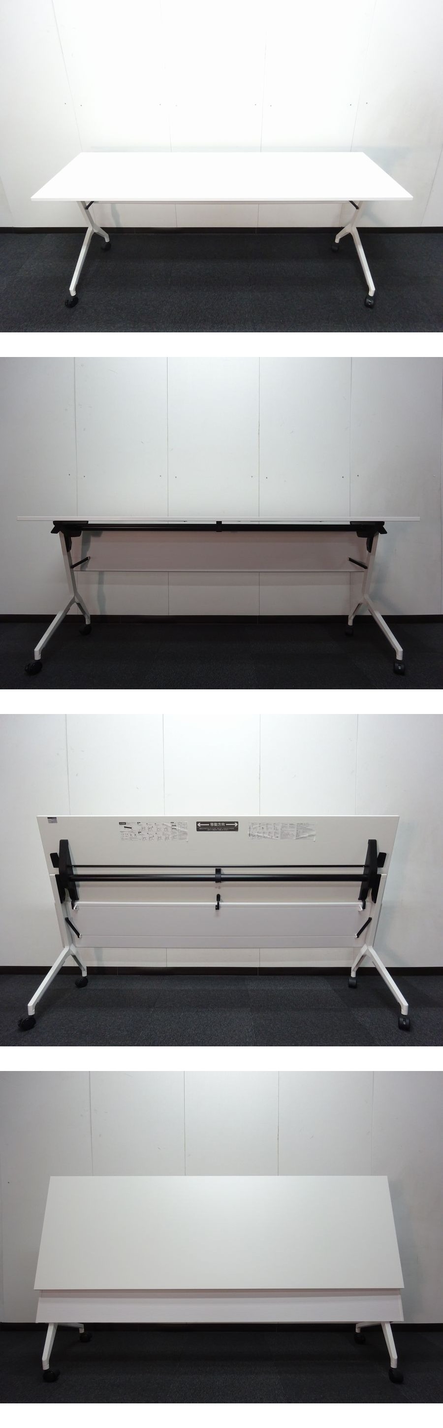 ・メーカー:イトーキ ・型番:THN-186KS-W9W9 ・サイズ:W1800×D600×H720 単位(mm) ・天板カラー:ホワイト ・脚:ホワイト ・価格:¥97,790円 オフィスファニチャーブランド イトーキの折りたたみテーブル スレントです。使いやすい機能を備えたスタンダードな折りたたみテーブルです。 ■仕様 ・天板:抗菌メラミン化粧板 ・エッジ:ABS樹脂 ・脚:アルミダイキャスト+スチール塗装仕上 ・キャスター:φ50ウレタン双輪キャスター 手前側ストッパー付 ■状態 ・こちらの商品は未使用品となります。運搬時の若干のスレはございますが、目立つキズ、汚れなど無く綺麗な状態です。ご検討宜しくお願い致します。 (※未使用とは…商品を開封し、設置等しましたが一度も使用せず保管していた商品となります。) | ||||