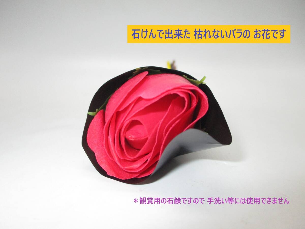 | 未使用品、倉庫での長期保存品です。 観賞用の 石鹸で出来た バラの一輪挿し 10本セットです。 石鹸で出来た花びらですので すぐに枯れてしまうことはなく また ほのかな香りも楽しめます。 ラッピング済みですので このまますぐにお渡しになれます。 以下の商品説明をよくご覧になってから、ご検討をお願い致します。 神経質な方、完品をご希望の方は、御入札をご遠慮ください。 【商品内容】 ソープフラワー 赤いバラの一輪挿し 10本 [基本的な仕様]*個々のお品で多少の差異があります 全長:約35cm 重量: 1本あたり 12g程度 その他: 海外製/メーカー等の詳細は不明 簡易的な ラッピング済み 石鹸で出来ているのは「花びら」のみ [観賞用の石鹸ですので、手洗い等には使用出来ません] *状態等は、画像にてご確認ください *実際の商品の色味とは異なる場合があります 【状態等】 ・未使用品、倉庫での長期保存品です。 ・個々のお品で、多少の差異があります ・ラッピングのシートに、折れ・シワが見られます。 ・「花びら」に多少の欠けがある場合があります。 【補足】 ・配送時の振動などで、全体の形が崩れる可能性があります。 ・ソープの香りや色合いは、永久的な物ではありません。 経年により、香りの薄れや色あせが起こる場合があります。 以上の点をご承知をいただける方のみ、 ノークレーム・ノーリターンにて、ご検討下さい。 【発送について】 ・定形外郵便(追跡・補償なし/郵便受けお届け)による発送を 予定しておりますが、 おてがる配送《日本郵便・ゆうパック》(追跡・補償あり/対面・置き配等) [配送料は お届け地域により異なります] にも対応いたします。 ・「まとめて取引」「同梱発送」も承ります。 発送にお時間をいただくことがありますが、 複数の商品をご落札の方はご相談ください。 *「送料込み」商品や、「同梱不可」記載のある商品との 「まとめて取引」「同梱発送」は、予告なく、お断りいたします。 *同梱発送により、配送方法・配送料が変更になる可能性があります。 また、配送方法変更に伴い、「匿名でのお取引(おてがる配送)」が 出来なくなる場合があります。 ご了承ください。 ・商品梱包サイズ 約 30×36×10(cm) 梱包サイズが比較的大きな商品になります。 配送先のポスト・宅配ボックス等に入らない場合は、 不在通知などの対応がされる可能性がございますので、 落札者様の方でその後の対応をお願い致します。 ・梱包には、再利用資材を使用することがあります。 ご了承ください。 状態・付属品につきましては、画像をご覧ください。 | |||