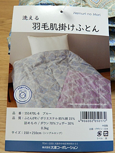 ☆洗える羽毛肌掛けふとん×1枚☆ | |||