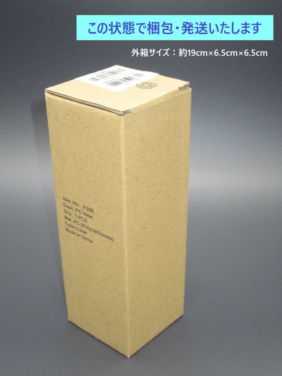 | 撮影・確認のため、外箱を開封しましたが、未使用品です。 商品下部に製造上のキズがあるようです。 その為「訳あり」として出品いたします。 以下の商品説明をよくご覧になってから、ご検討をお願い致します。 神経質な方、完品をご希望の方は、御入札をご遠慮ください。 【商品内容】 starwares/XZY ポリカーボネート製 花瓶[花型] F029 ・カラー:クリア(無色透明) ・サイズ: 高さ 約18cm/上部開口部径 約6cm ・重量:約230g ・中国製 ・ポリカーボネート製品は 基本的には「割れない」という特徴がありますが、傷は付きます 《取り扱い上の注意(同封のタグより)》 ・耐衝撃性を持っていますが 衝撃を受けた際に 傷や凹みが付く場合がございます ・長期間水を入れたまま、または汚れたまま放置すると 汚れが取れなくなる可能性がございます ・長期間直射日光の当たる場所や 火気の近くで使用すると 変色や変形が起こります ・耐熱耐冷温度は【110℃~-20℃】です キャンドルは使用できません ・ベンジンやシンナー等の有機溶剤や ガラスコーティング剤を使用すると ヒビ割れや変形の原因になります ・お手入れ 専用クロスか柔らかい布を使って拭いて下さい 汚れが落ちにくい場合は 中性洗剤などを使用して洗い流して下さい ブラシや研磨剤の入った物を使用しますと 製品に傷が付く恐れがございます *状態などは画像にてご確認ください *実際の商品の色味とは異なる場合があります *サイズ対比として 一般的なコーヒーボトル小缶と一緒に撮影した画像をあげています 参考にどうぞ(画像7) 【状態等】 ・撮影・確認のため、外箱を開封しましたが、未使用品です。 ・海外製につき、 製造上のスレ・キズ・汚れ等がある場合があります。 美品・完品をご希望の方はご遠慮ください。 ・商品付属のタグ(注意書き)には、シワ・折れがあります(参考:画像8) ・商品下部に製造時についたと思われるキズが見られます。 (参考:画像5) あらかじめご了承ください。 ・商品は、ごく簡易的に保護し、発送いたします。 以上の点より「訳あり」として出品いたします。 ご承知をいただける方のみ、 ノークレーム・ノーリターンにてご検討下さい。 【発送について】 ・レターパックプラス(追跡あり・補償なし/対面お届け)による発送を 予定しておりますが、 おてがる配送《日本郵便・ゆうパック》(追跡・補償あり/対面・置き配等) [配送料は お届け地域により異なります] にも対応いたします。 ・「まとめて取引」「同梱発送」も承ります。 発送にお時間をいただくことがありますが、 複数の商品をご落札の方はご相談ください。 *「送料込み」商品や、「同梱不可」記載のある商品との 「まとめて取引」「同梱発送」は、予告なく、お断りいたします。 *同梱発送により、配送方法・配送料が変更になる可能性があります。 また、配送方法変更に伴い、「匿名でのお取引(おてがる配送)」が 出来なくなる場合があります。 ご了承ください。 ・商品外箱サイズ 約 19×6.5×6.5(cm) 梱包サイズが比較的大きな商品になります。 配送先のポスト・宅配ボックス等に入らない場合は、 不在通知などの対応がされる可能性がございますので、 落札者様の方でその後の対応をお願い致します。 ・梱包には、再利用資材を使用することがあります。 ご了承ください。 状態・付属品につきましては、画像をご覧ください。 | |||